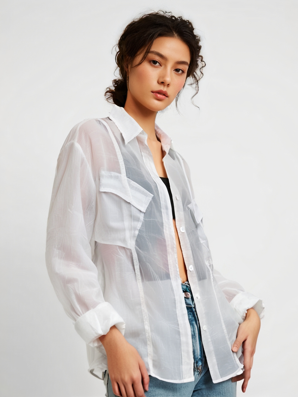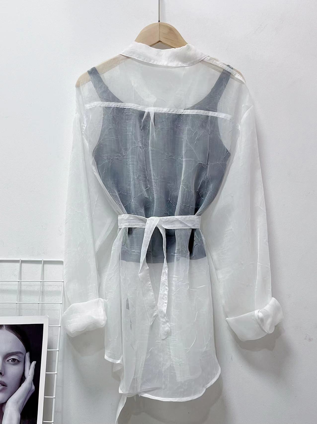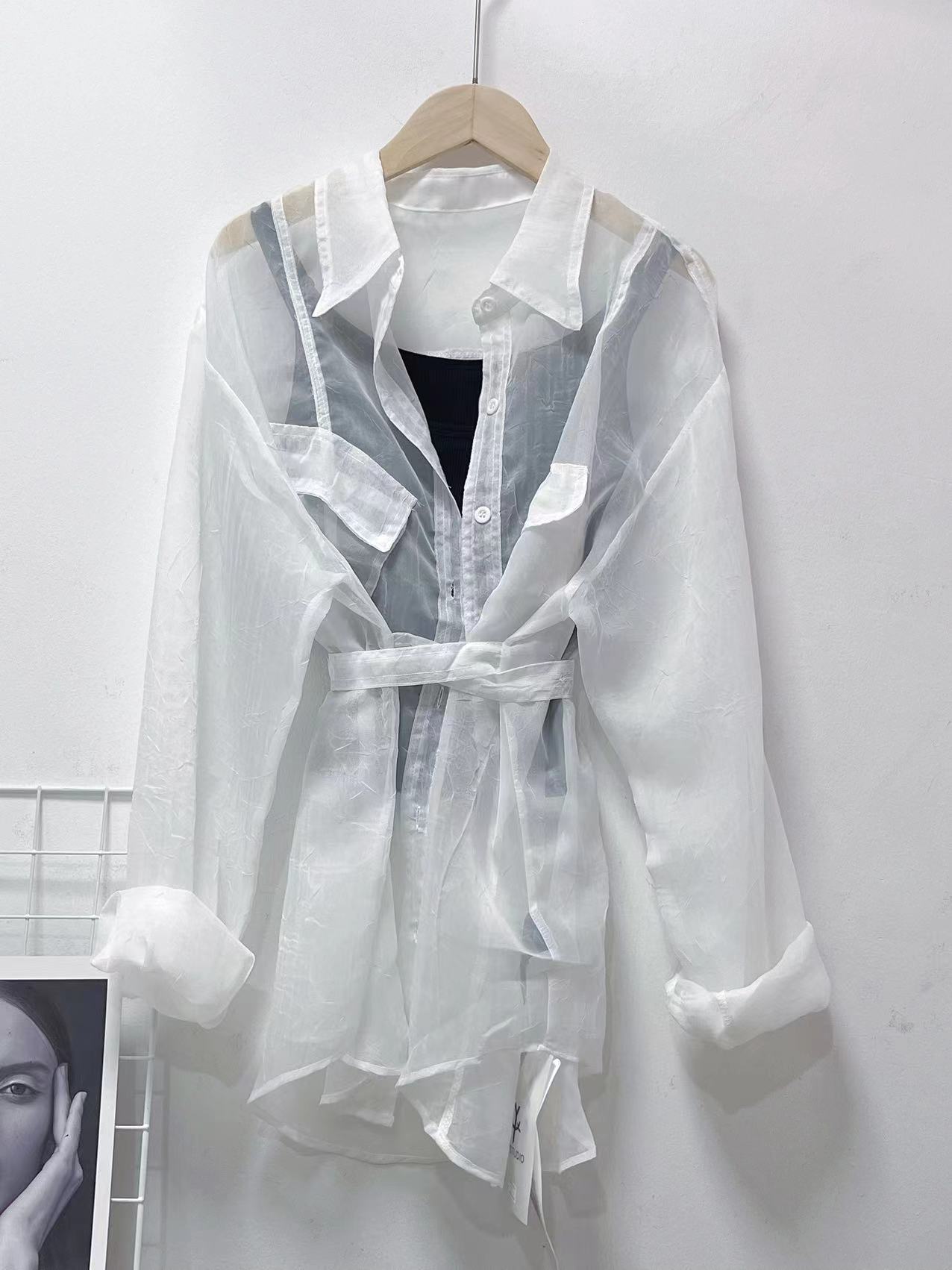 中秋大力度清仓~(不支持退)(NO退,能接受拍)原创设计师-多穿款 22159冰裂纹薄纱上衣衬衫外套(单件)-喜出