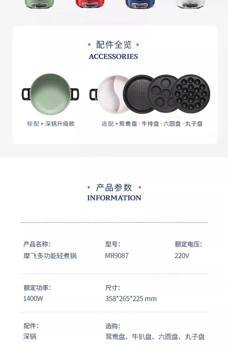 中国摩飞电火锅多功能电煮锅MR9087蓝色