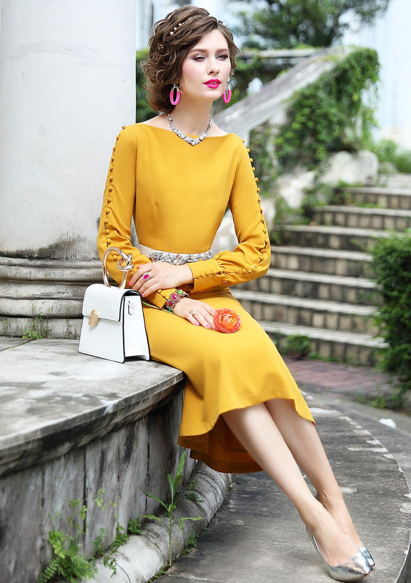 FMY-25476新款洋气法式复古气质修身中长款裙