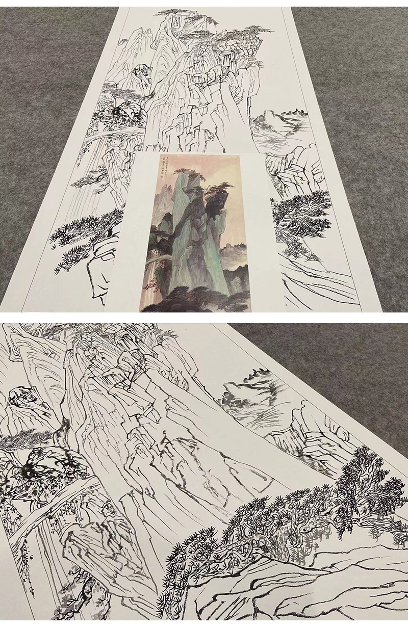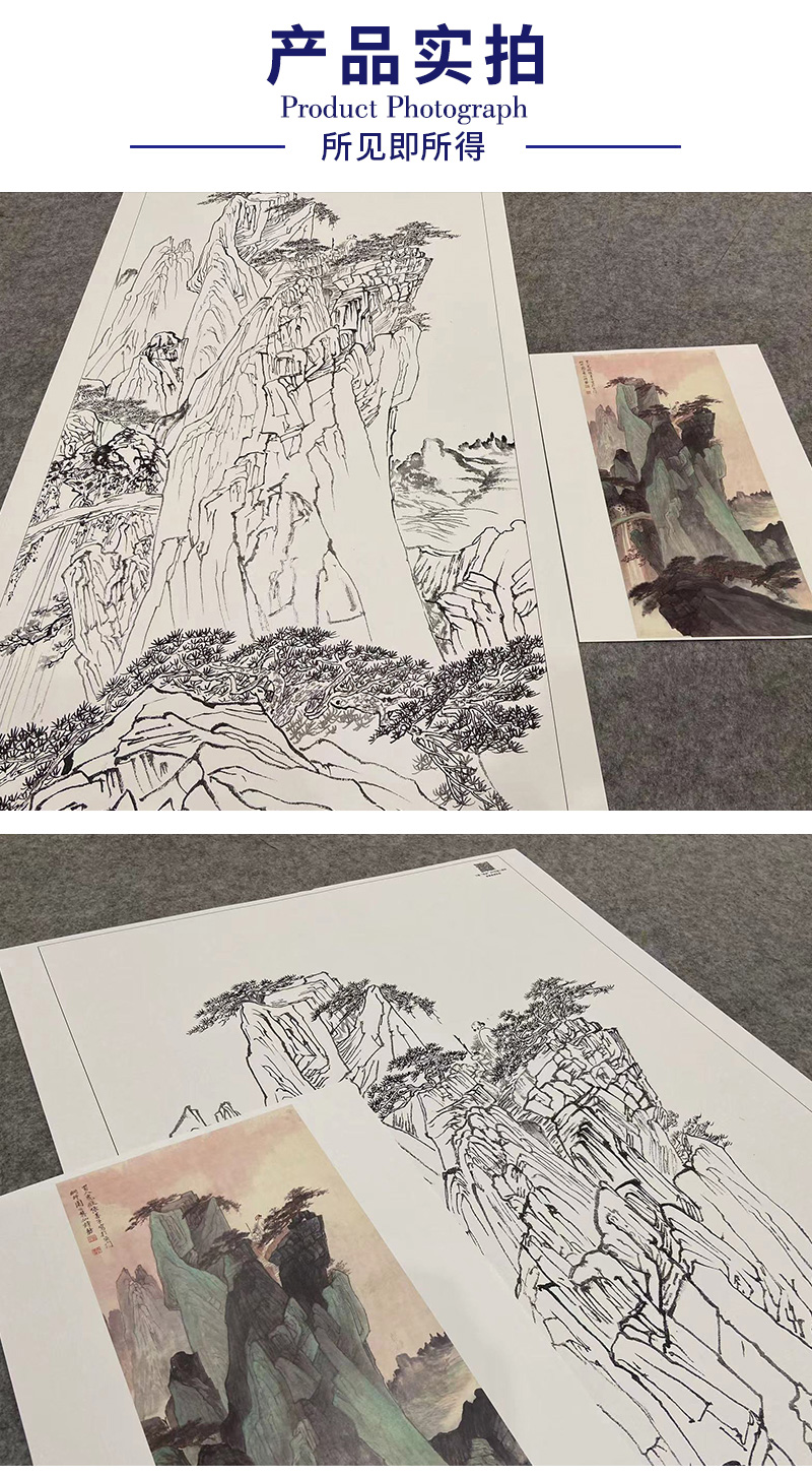 【大彩图】张善孖工笔画白描底稿《山水轴》临摹勾线高清打印稿A649