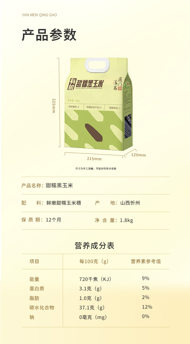 忻州有机黑糯玉米 1.8kg/袋
