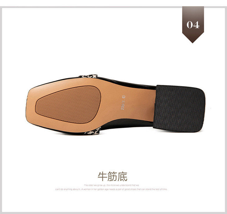 OLD-D3105dd 2022春秋新品漆皮中跟单鞋女方头一脚蹬英伦乐福鞋女粗跟女士皮鞋