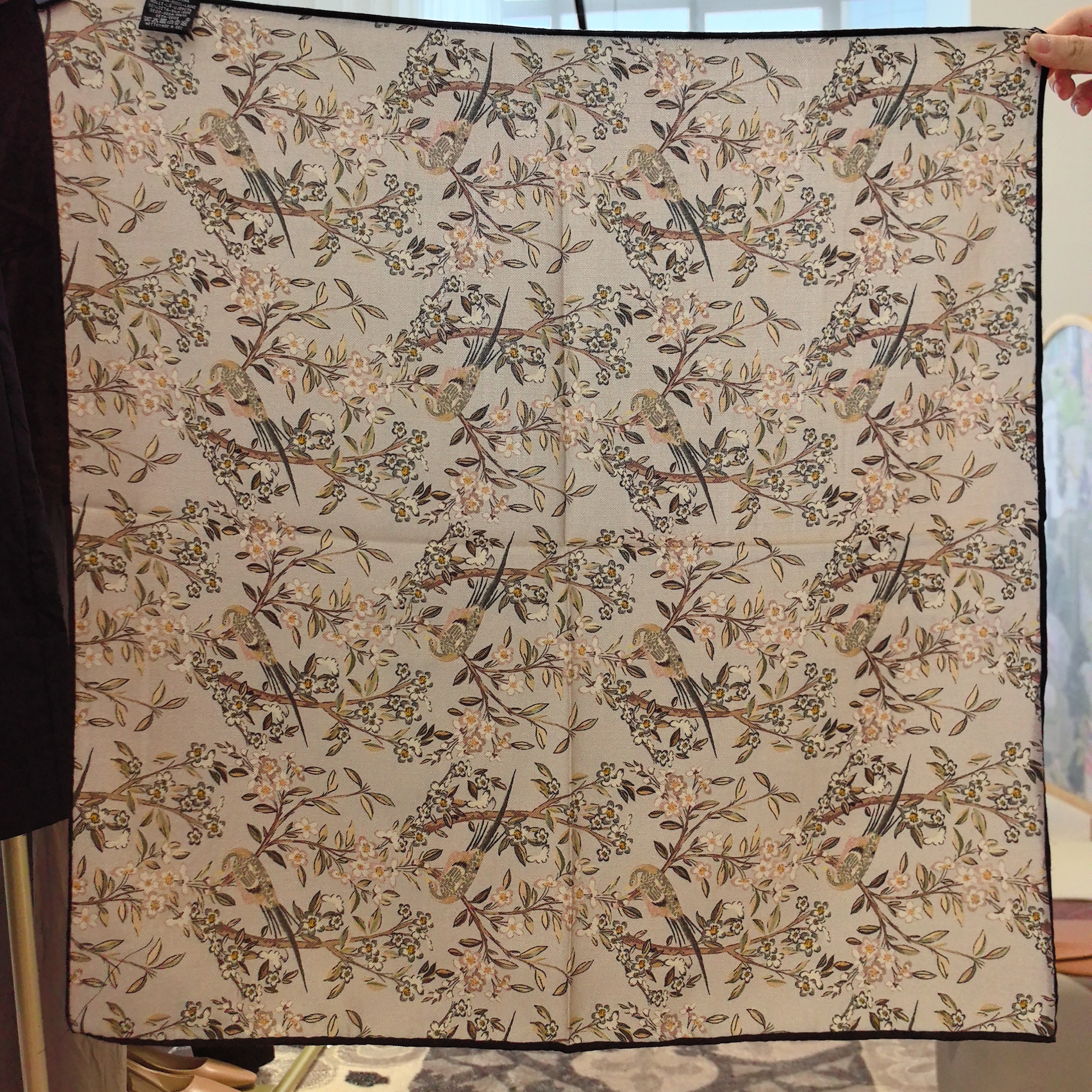 【甄珠贝·花卉系列】70*70cm雀之歌双面异色丝羊毛丝巾和天然淡水珍珠鹦鹉胸针礼盒套装