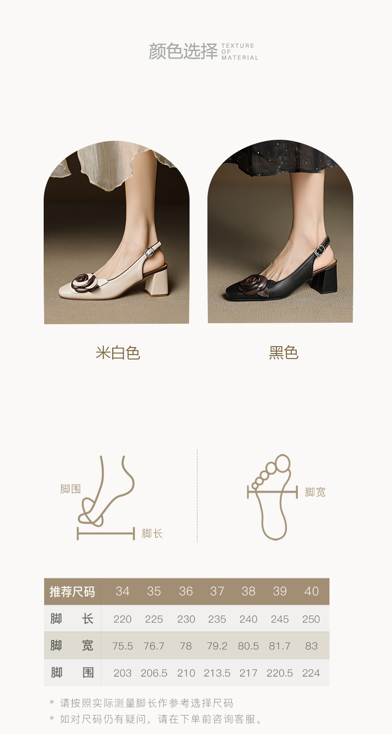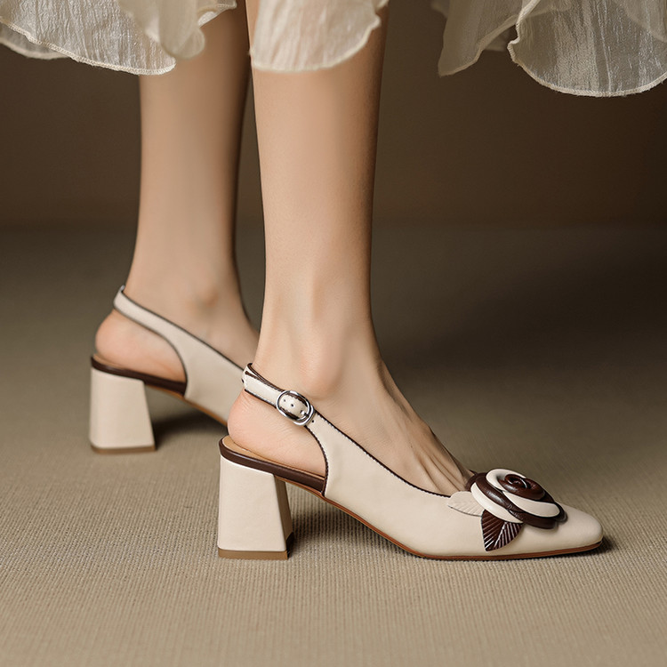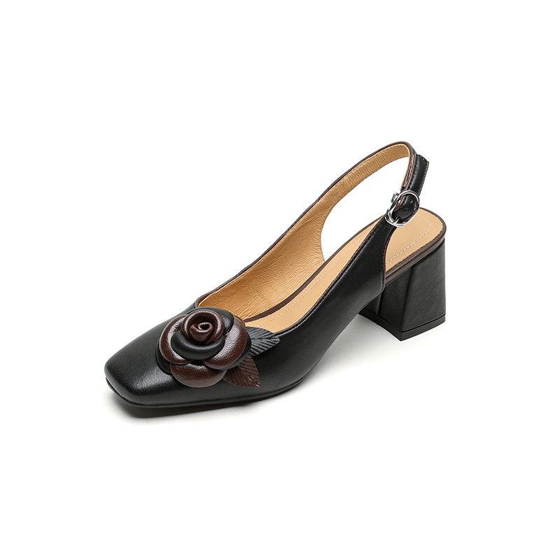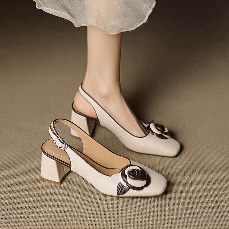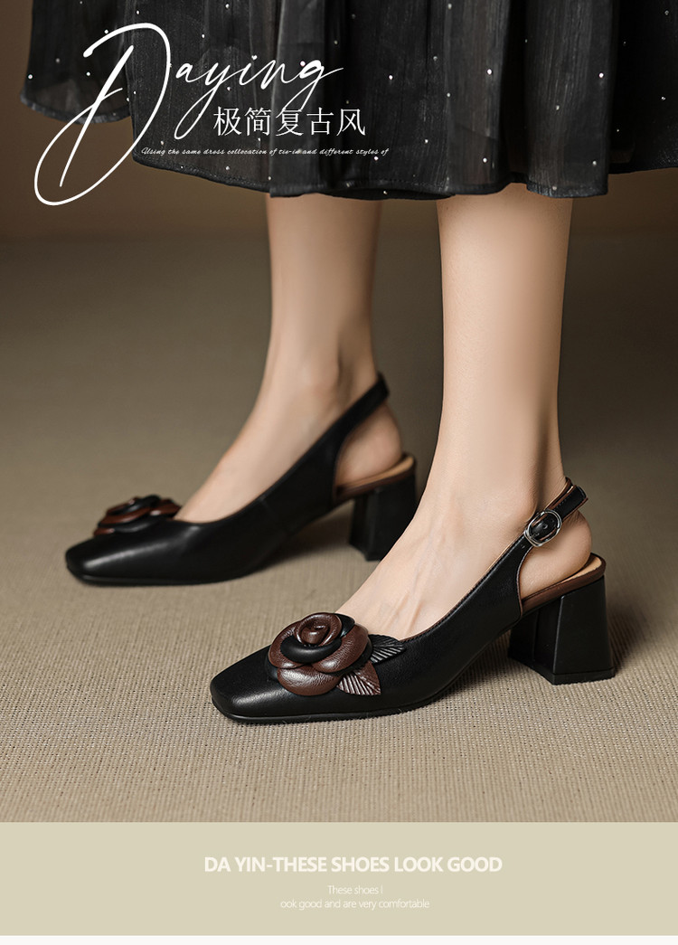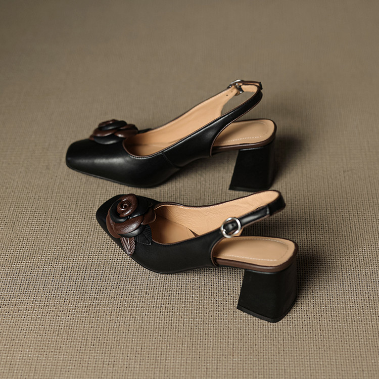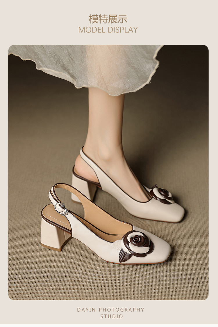 【预售5天】夏季新款绝美真皮花朵包头凉鞋女配裙子仙女复古粗跟后空单鞋168XY&1681256