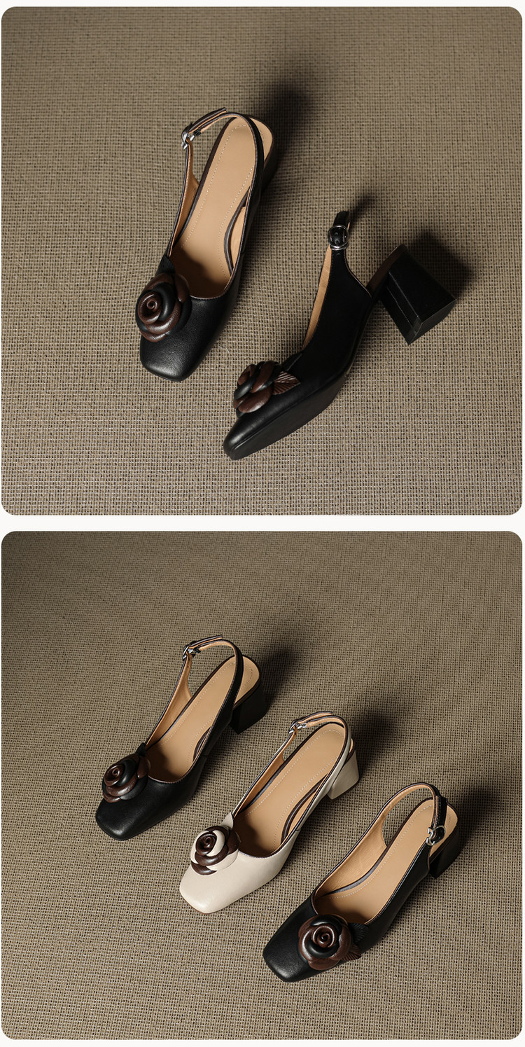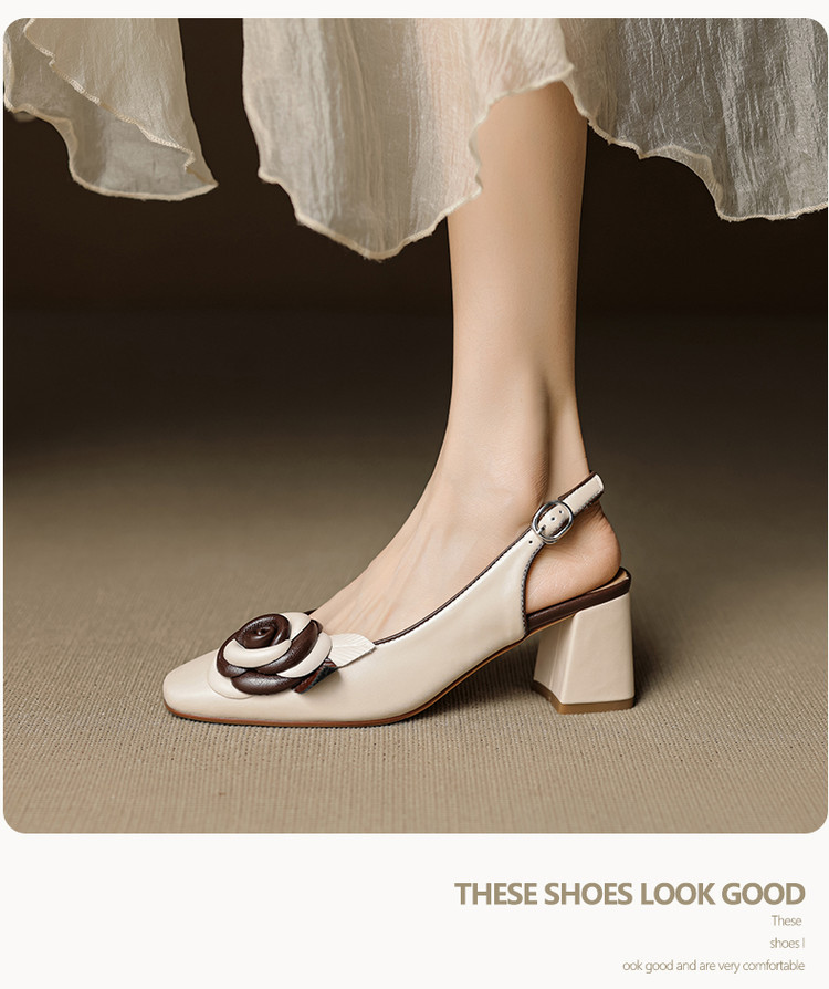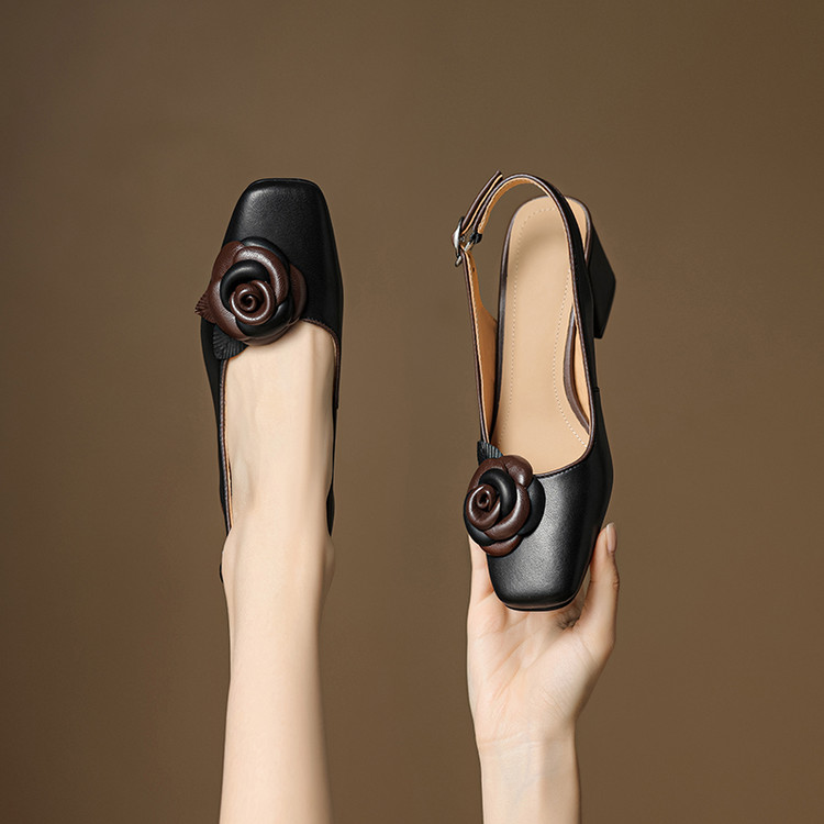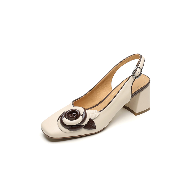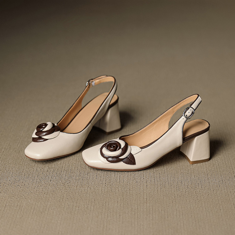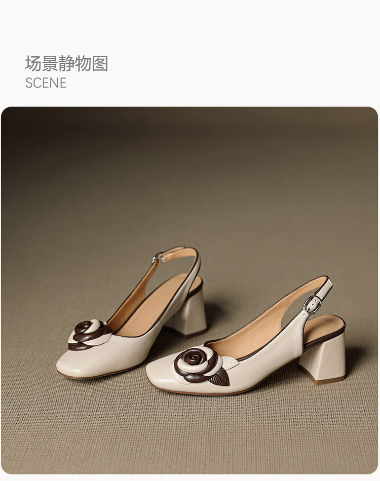 【预售5天】夏季新款绝美真皮花朵包头凉鞋女配裙子仙女复古粗跟后空单鞋168XY&1681256