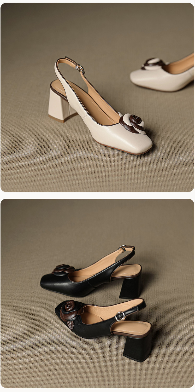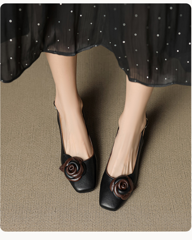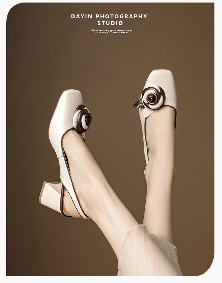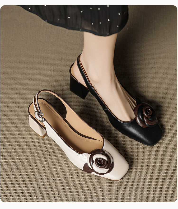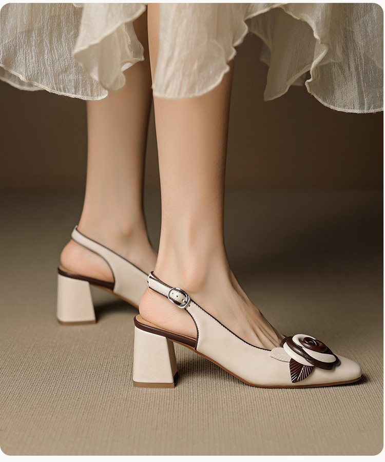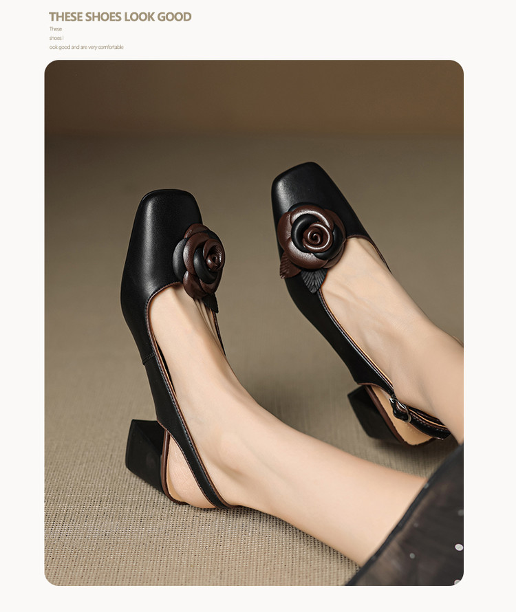 【预售5天】夏季新款绝美真皮花朵包头凉鞋女配裙子仙女复古粗跟后空单鞋168XY&1681256