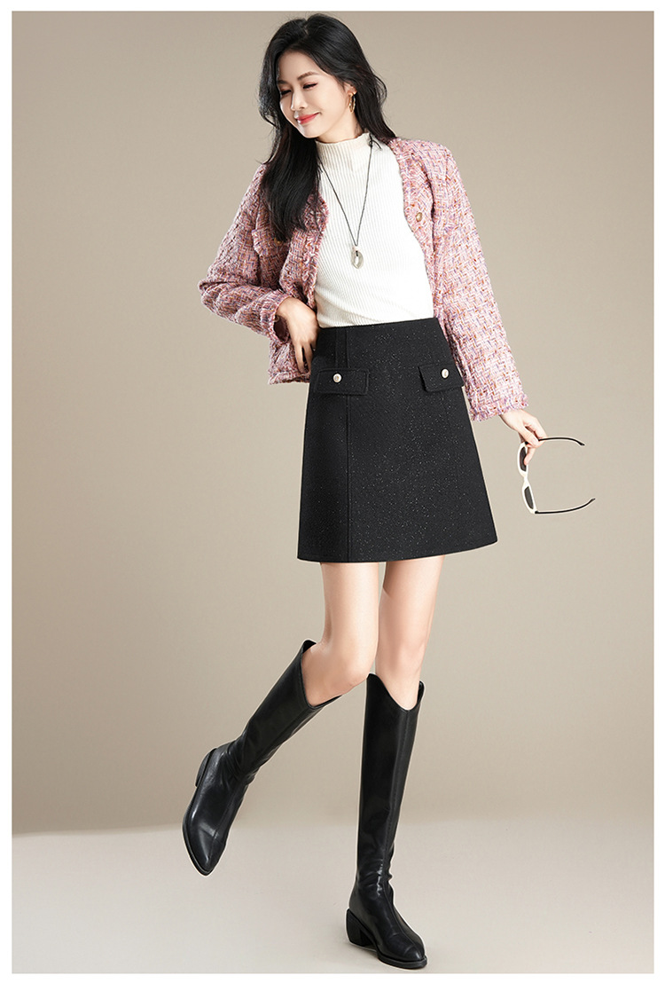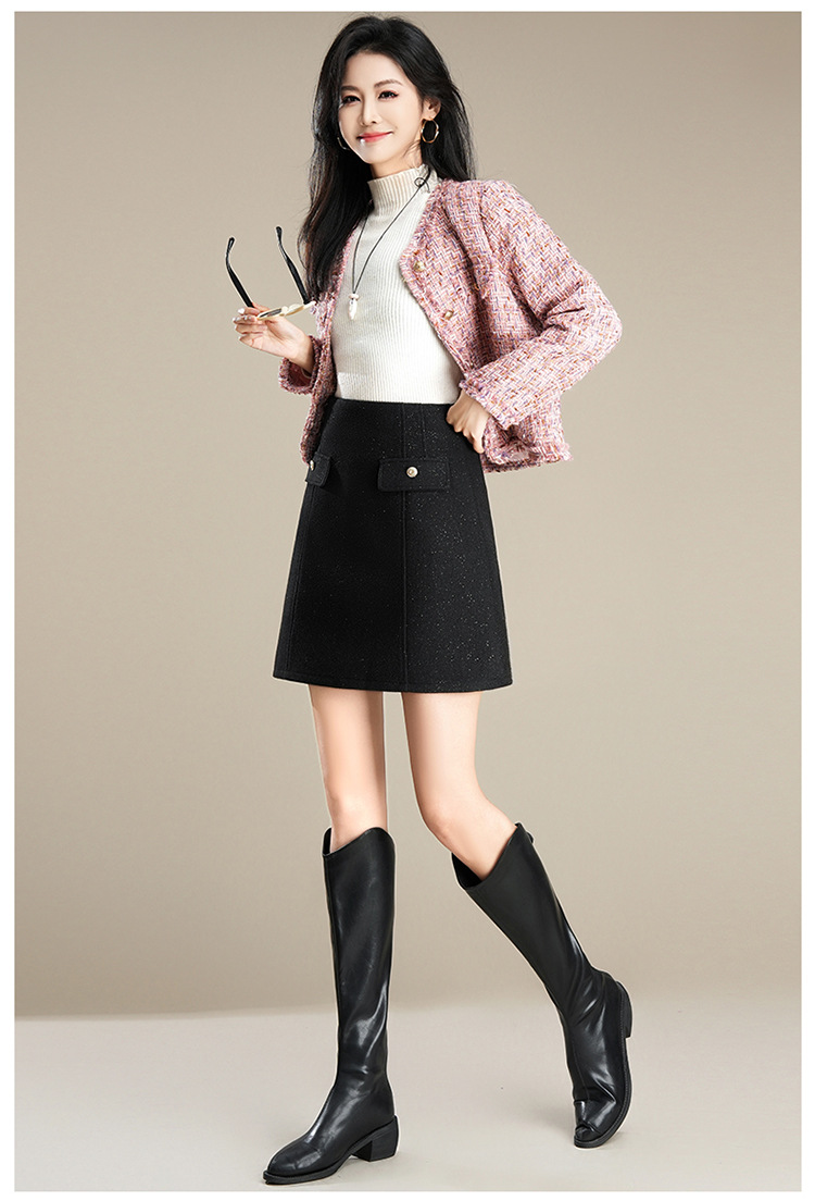 「自」全新升级【铂金会员119/天猫159/差价40】(21651)洛诗琳法式气质小香风亮片半身裙2025冬季新款高腰显瘦A字裙