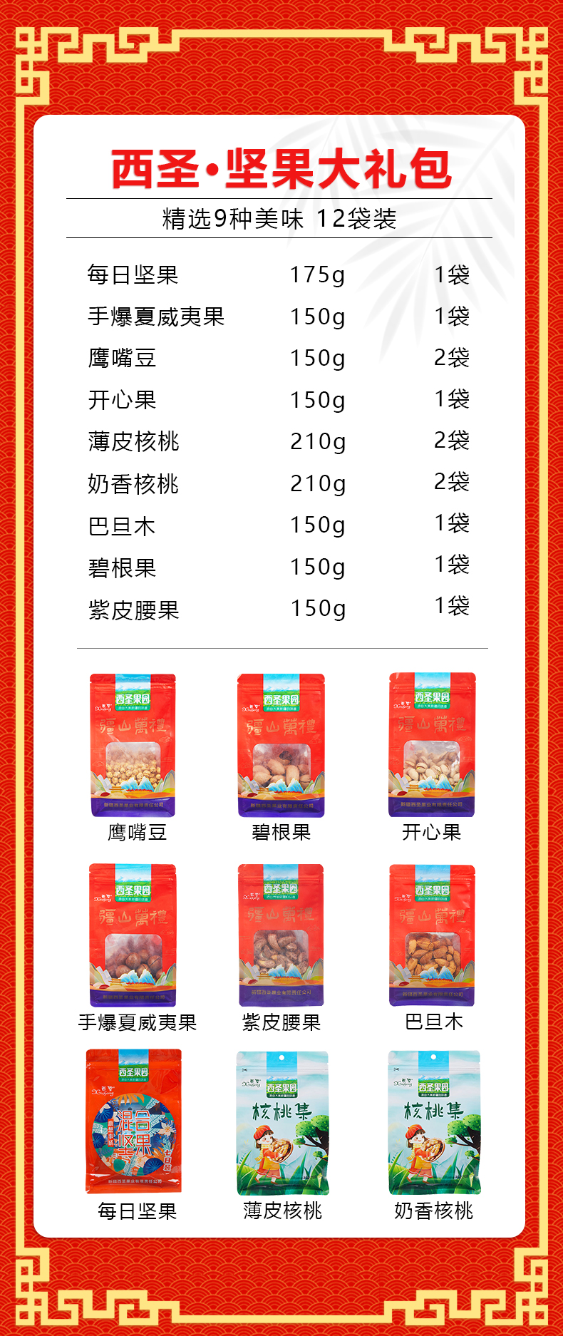 西圣·新疆特色坚果礼盒2000g 精选9种美味 12袋装 送礼首选