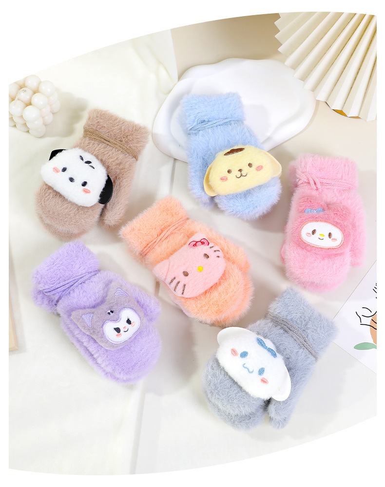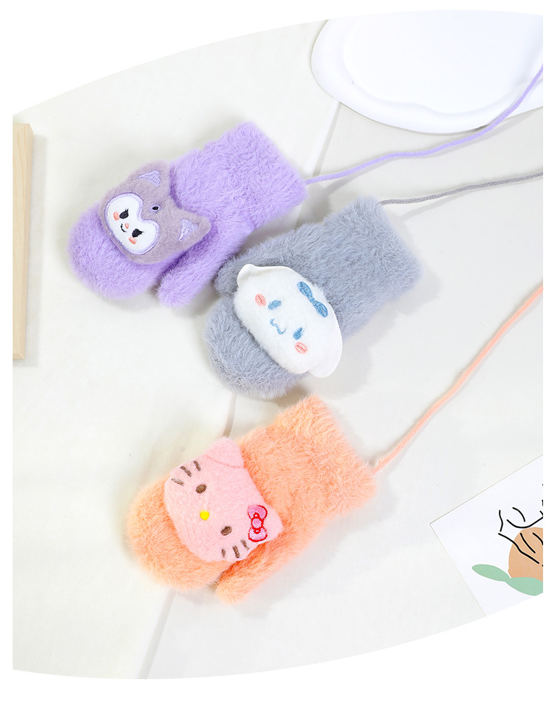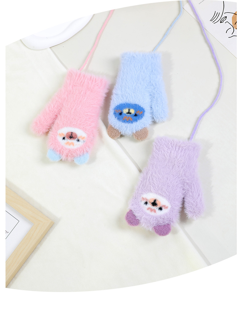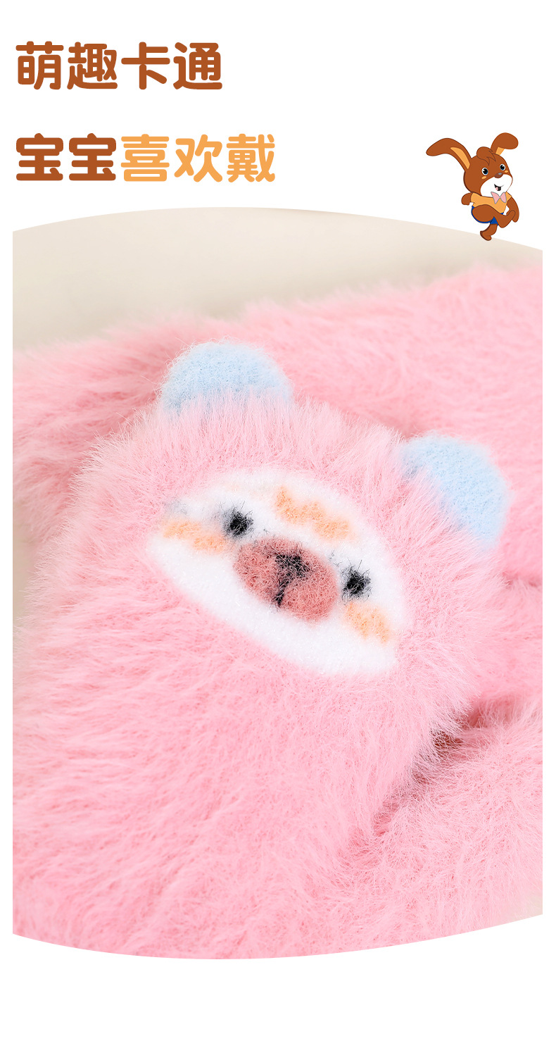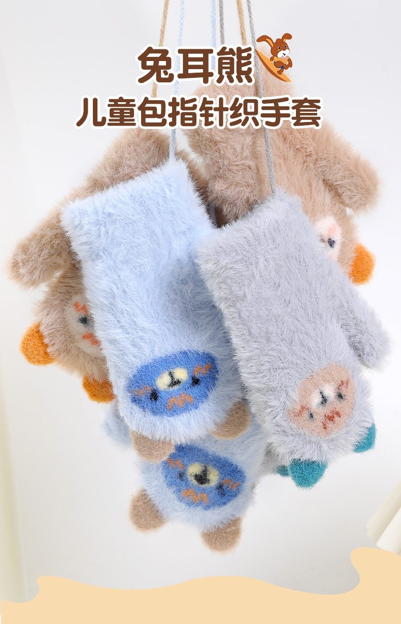 随机发!【保暖抗冻挂绳不漏风❗️双层毛绒更保暖】儿童手套秋季宝宝加绒加厚男孩针织女童全指挂绳冬天保暖毛绒手套。hb