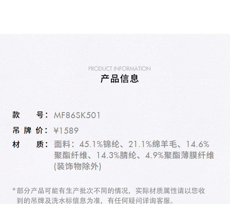 玛克门店发货:MAXRIENY鎏金小香半裙(货号:MF86SK501)