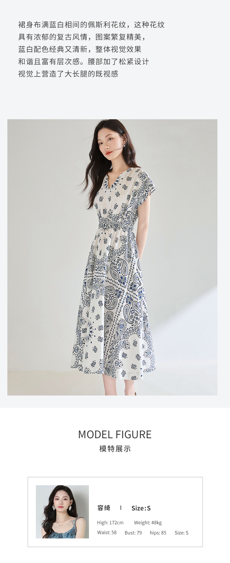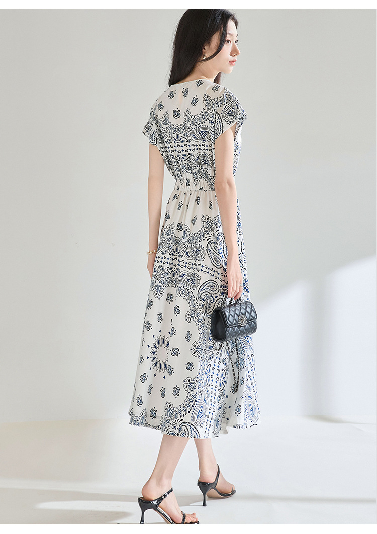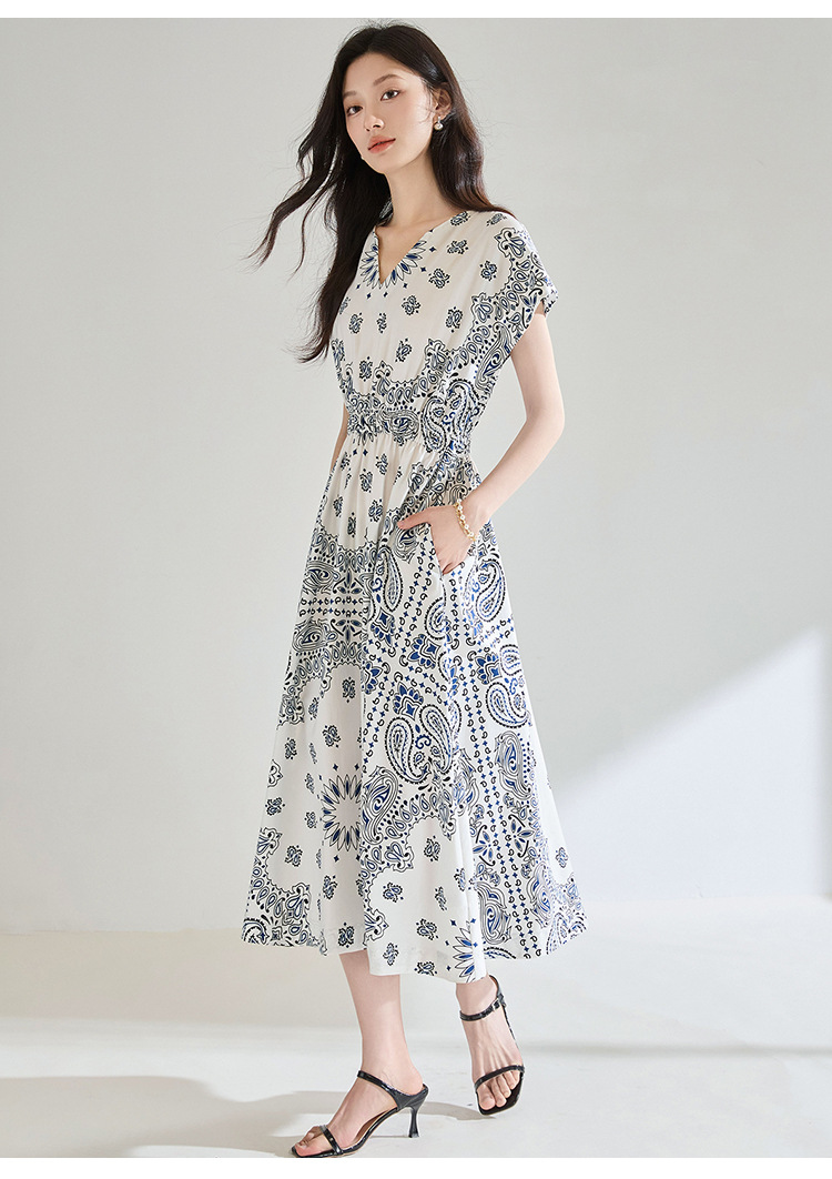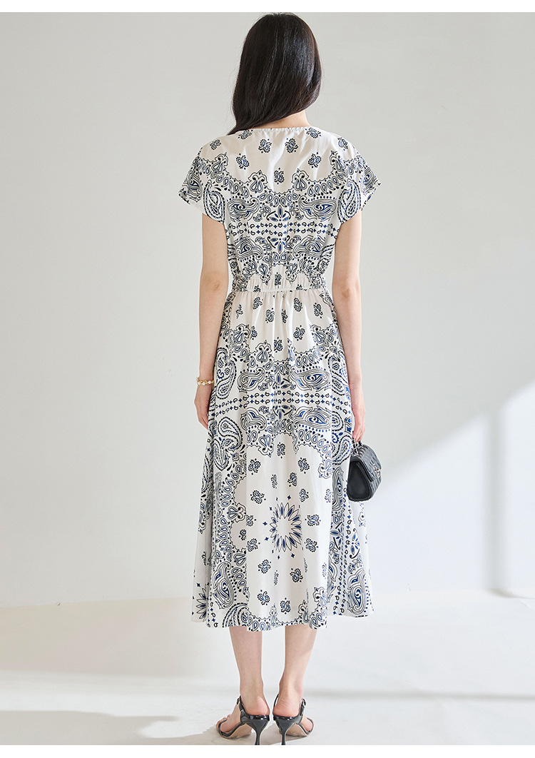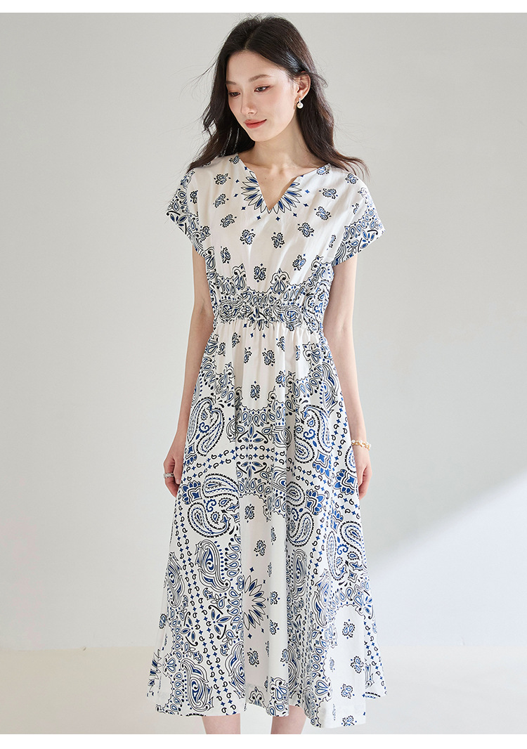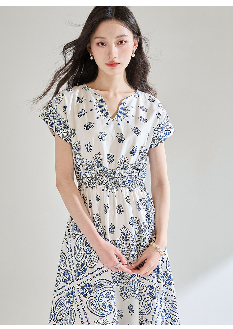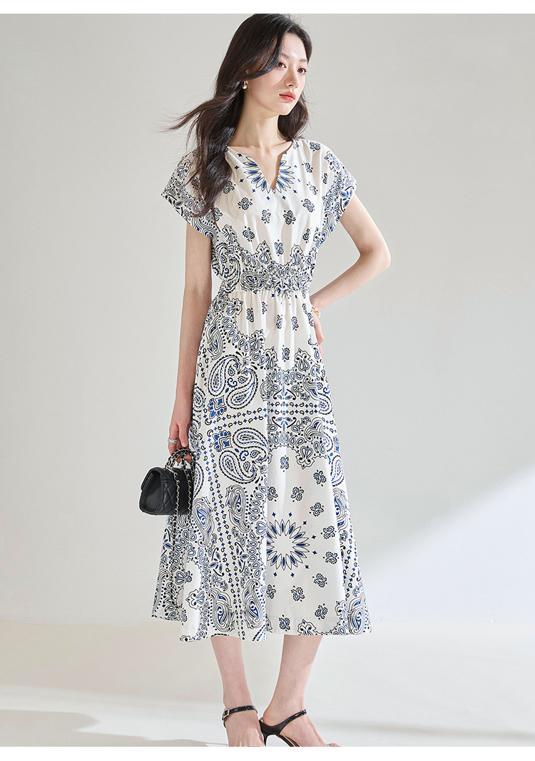 「高货sh」全新升级【铂金会员275/天猫369/差价94】(05930)洛诗琳法式复古定位印花连衣裙2025夏季松紧腰度假风裙子sh05930