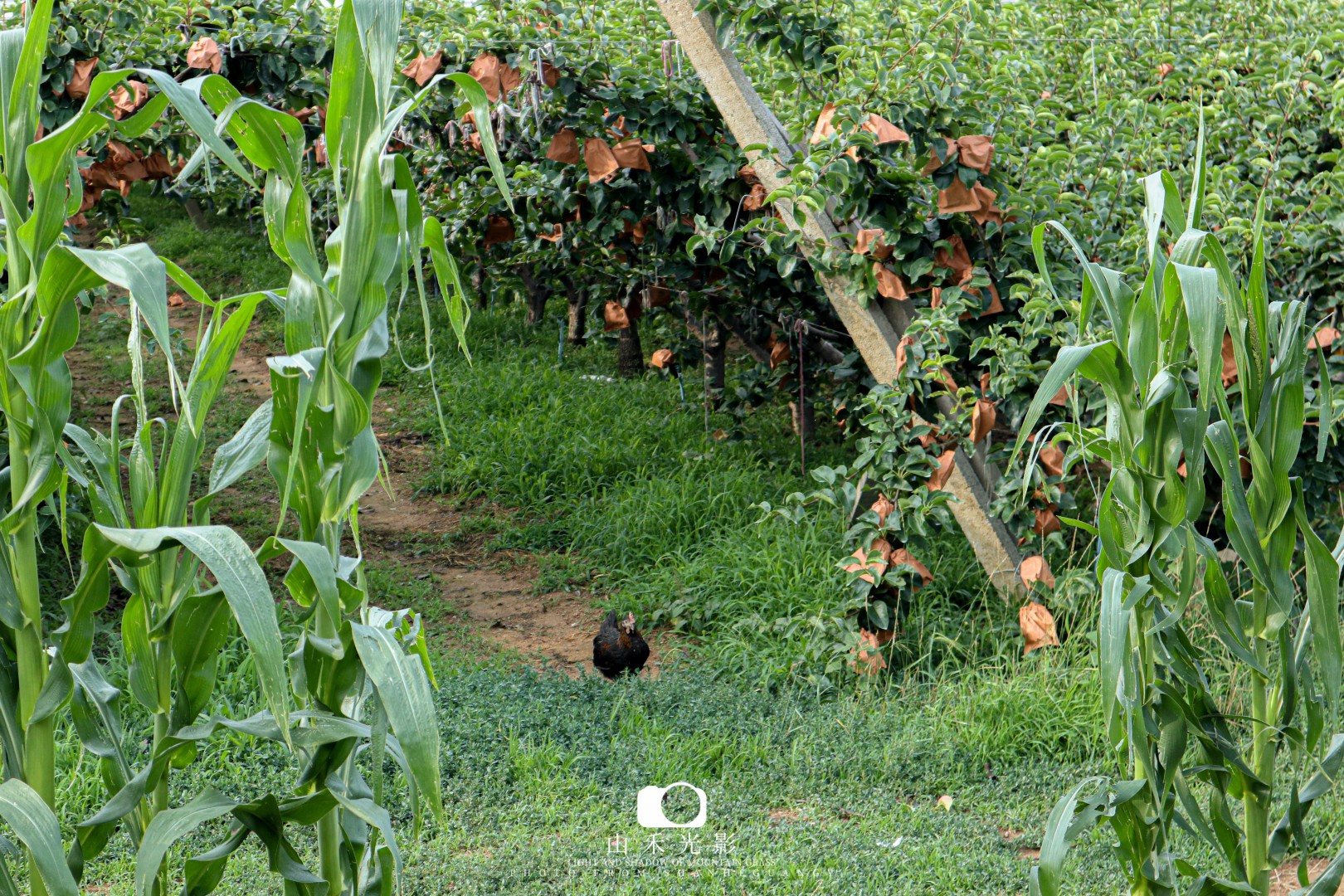百亩基地里采取传统的种植方式,手工除草,物理杀虫,还养了很多走地鸡鸭,给果树提供优质的有机农家肥。
