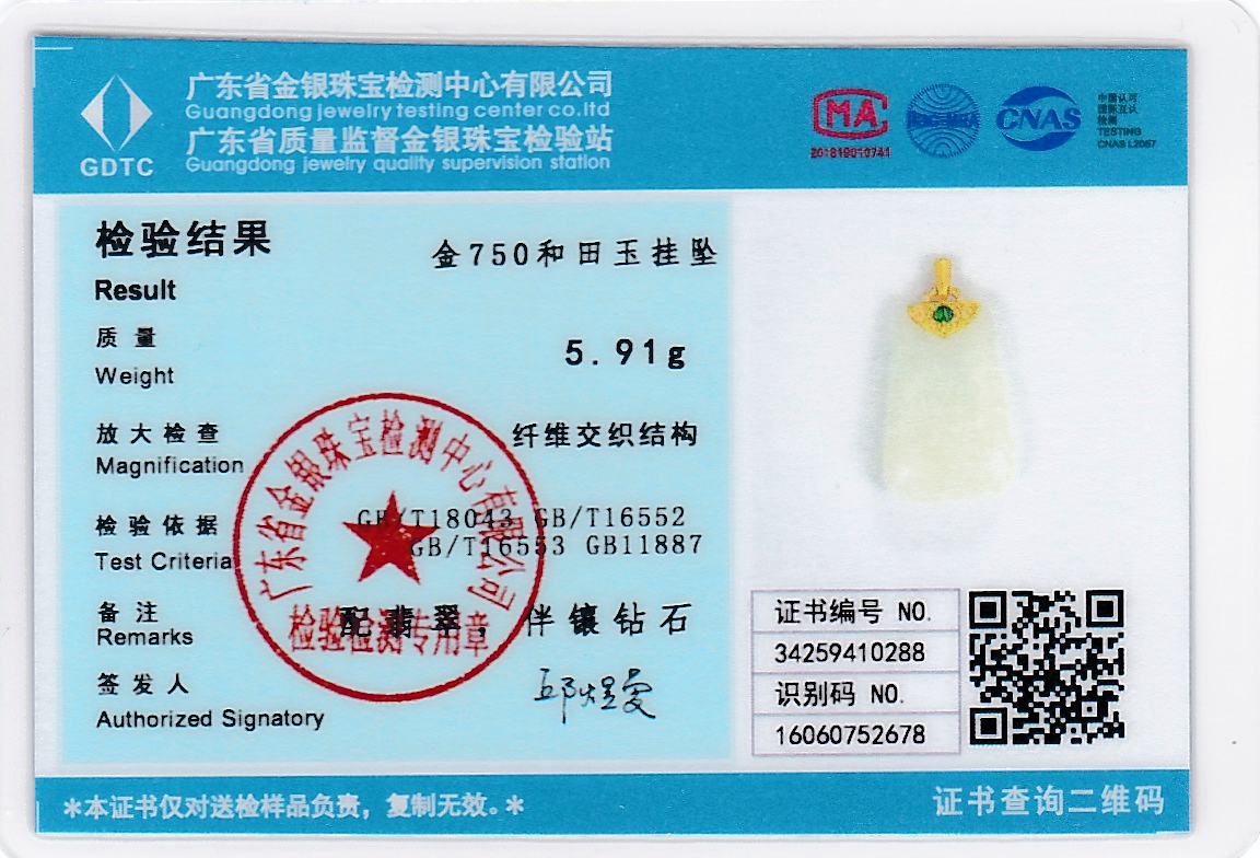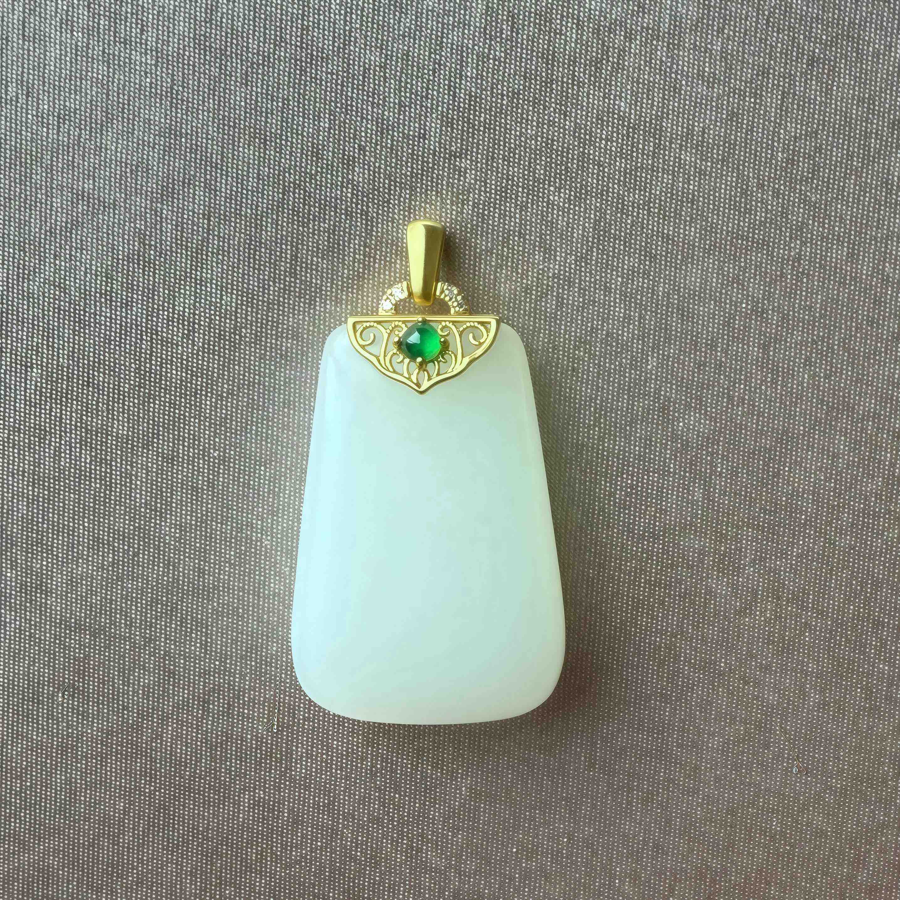 18k古法黄金和田玉(白玉)吊坠
