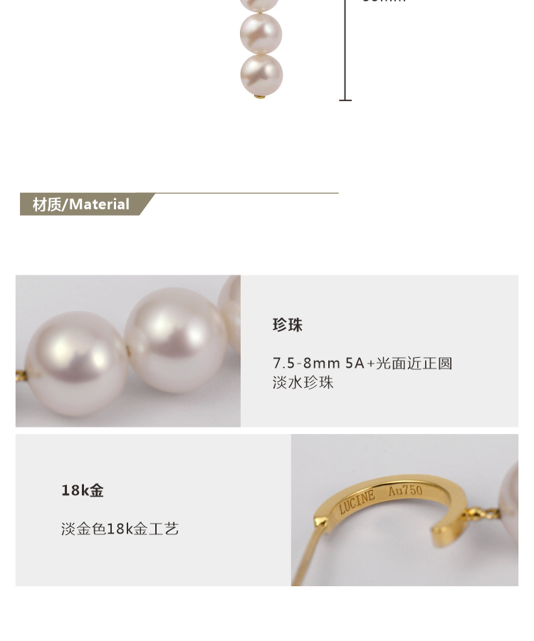 LUCINE 檐雨珠天然珍珠18K黄金耳饰耳坠耳环女高级设计感流苏长款