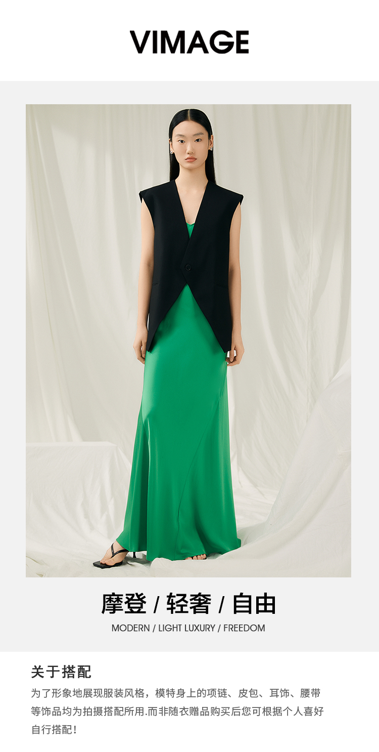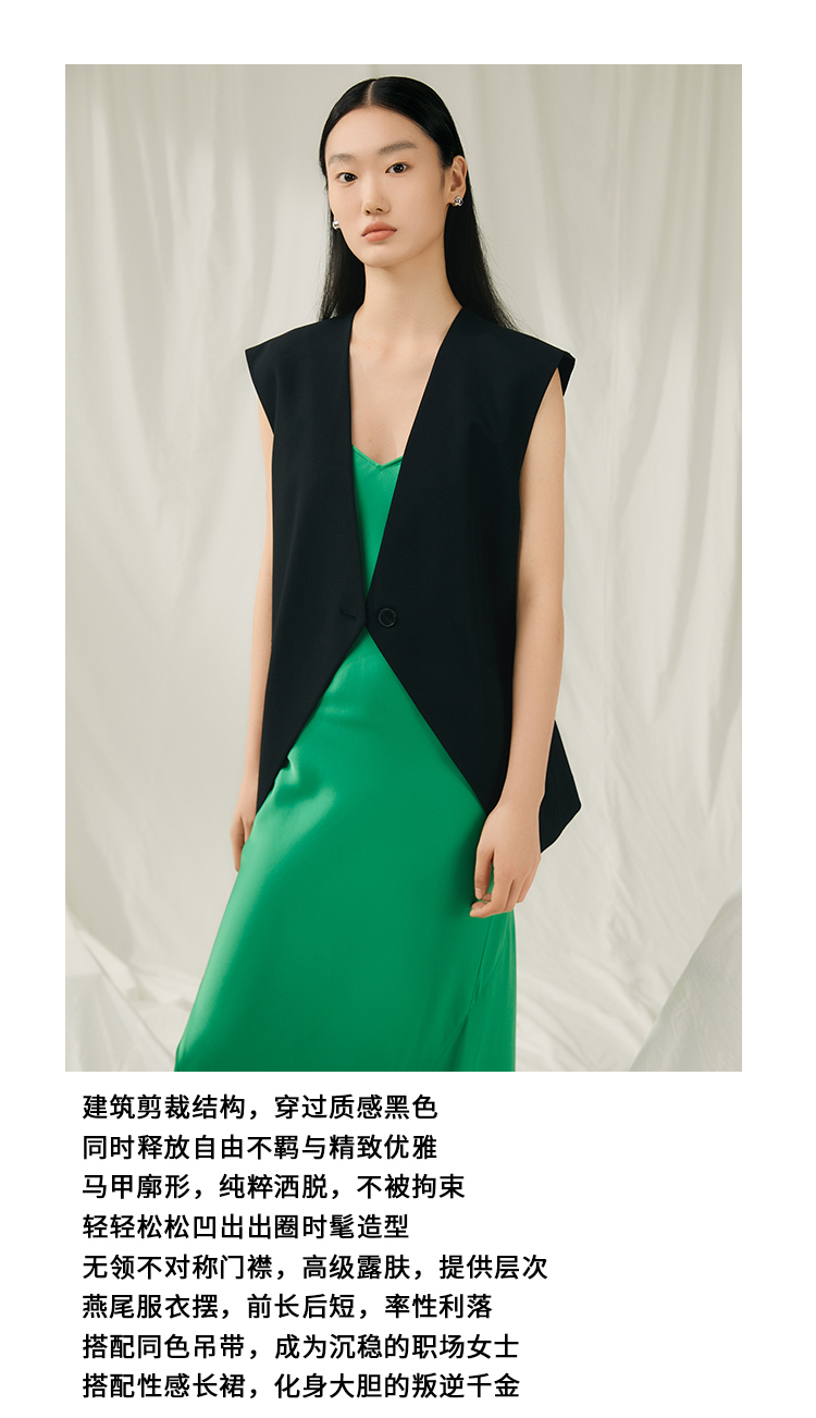 VIMAGE纬漫纪夏季新款百搭马甲简约修身西装薄外套V1903514