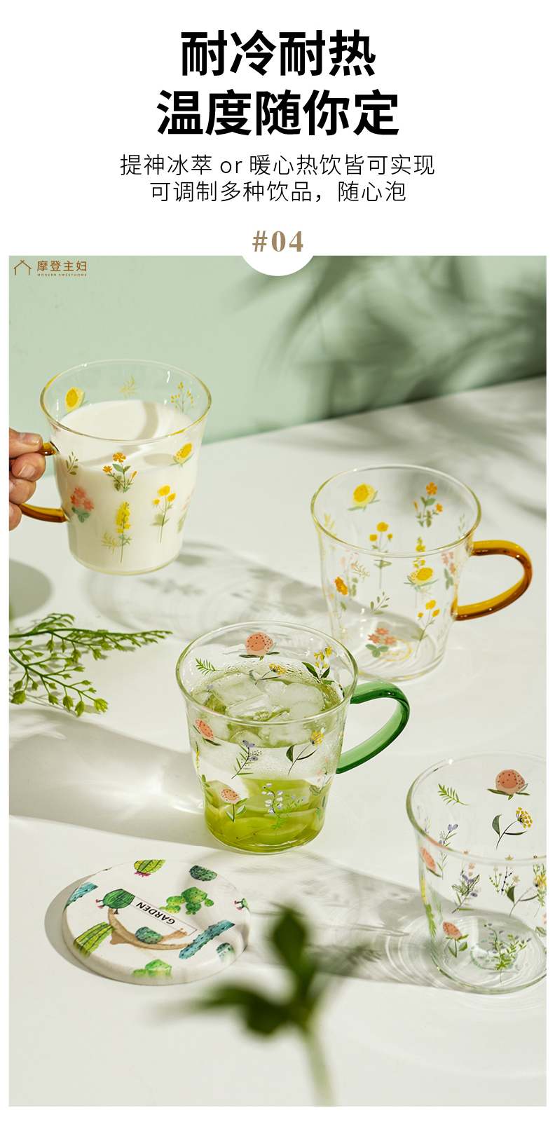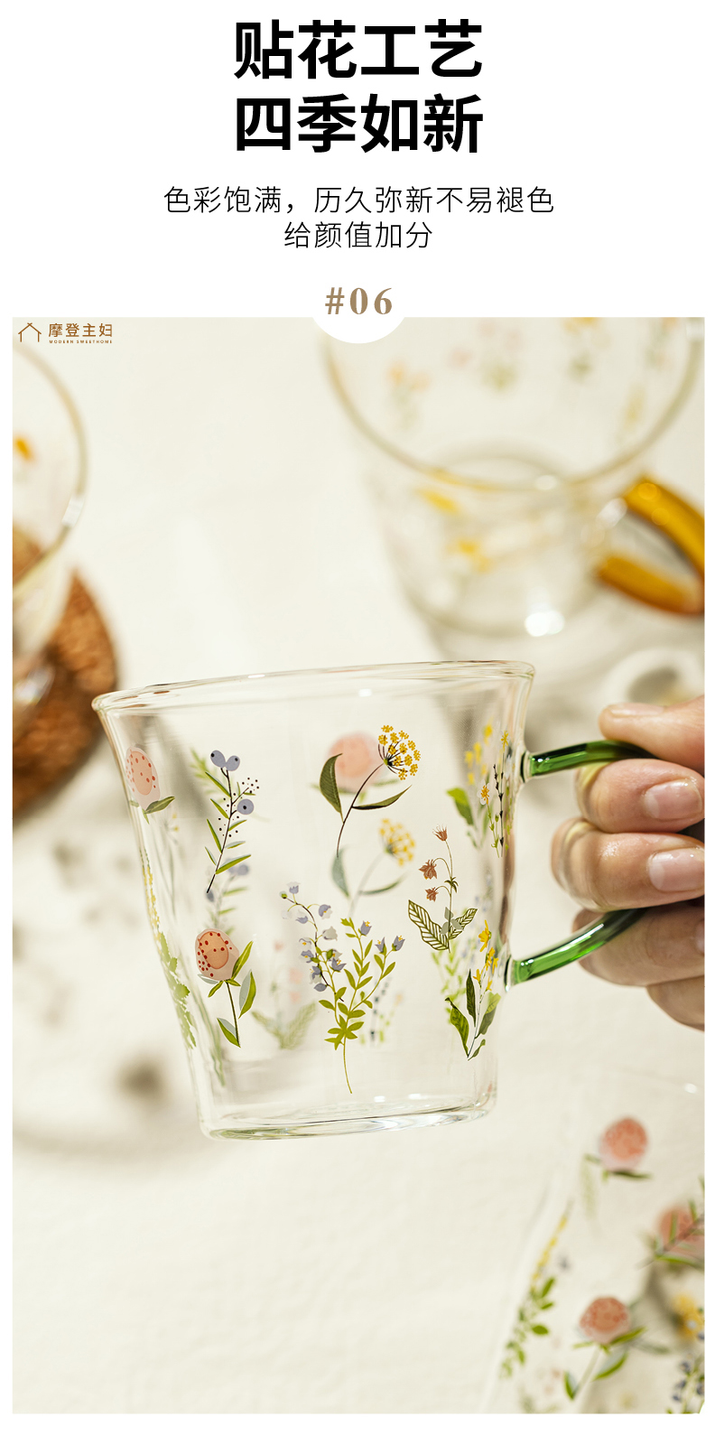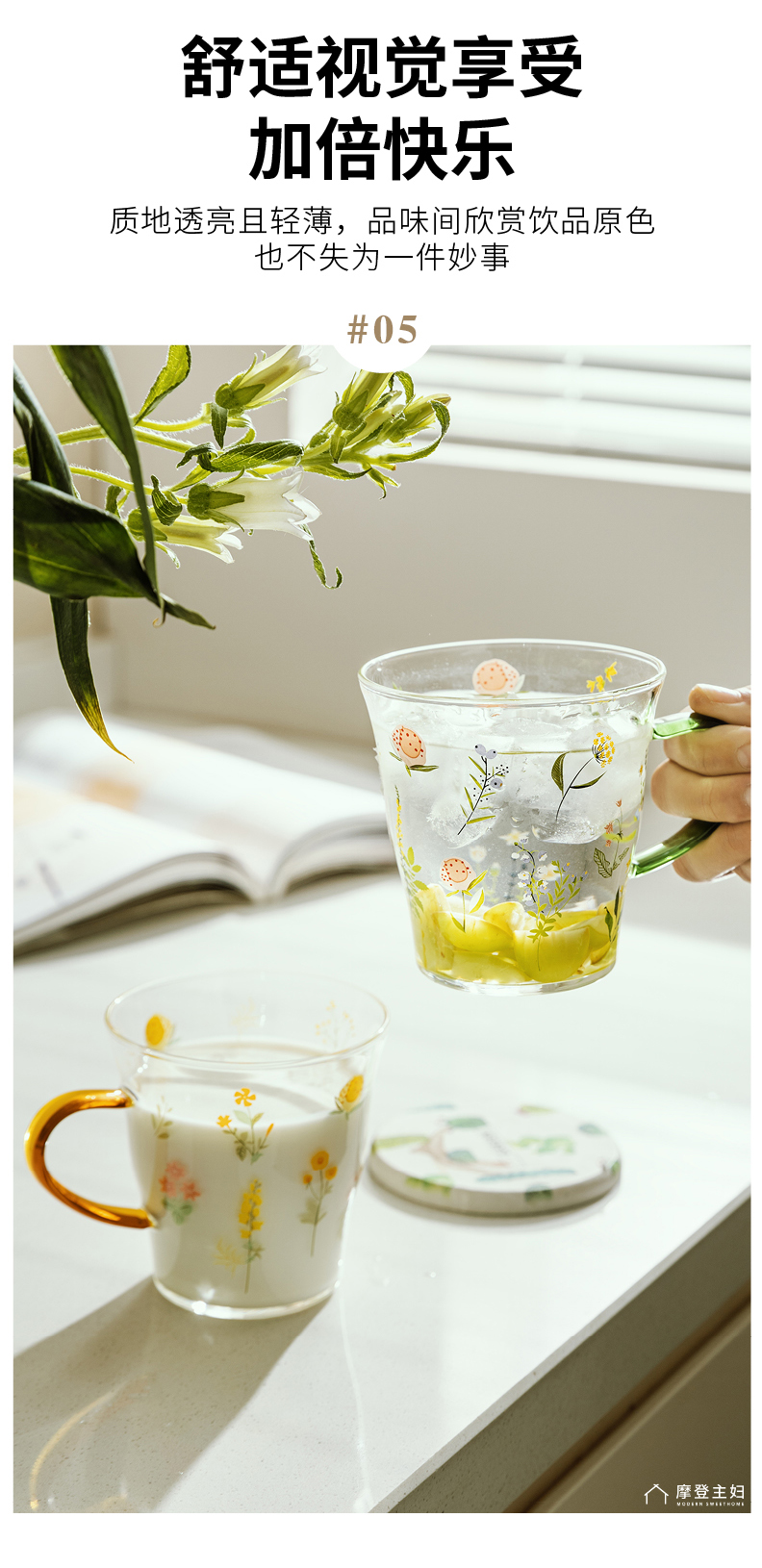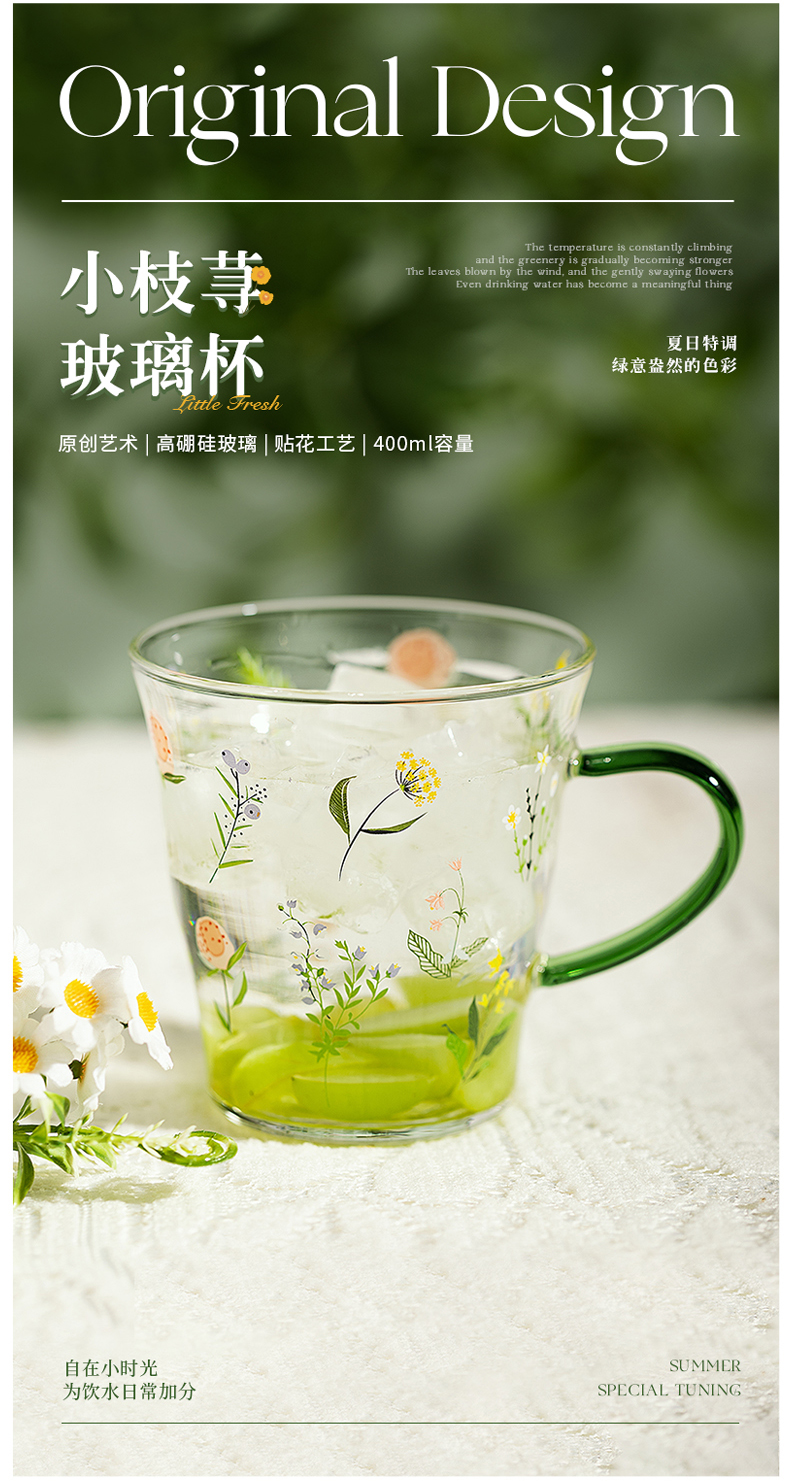 摩登主妇小枝荨玻璃杯耐高温果汁牛奶杯高颜值喝水杯2024新款杯子