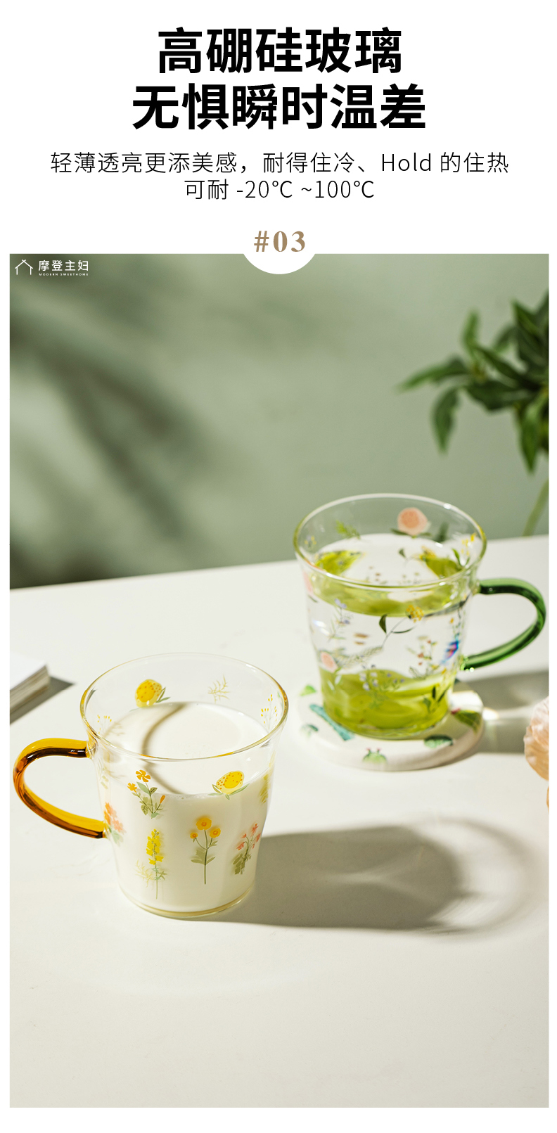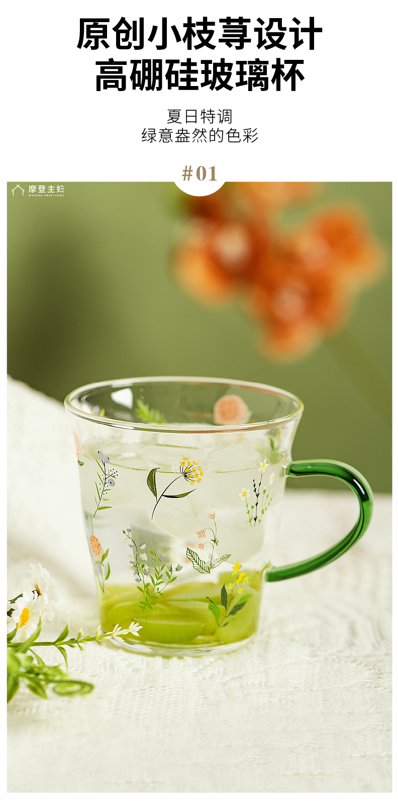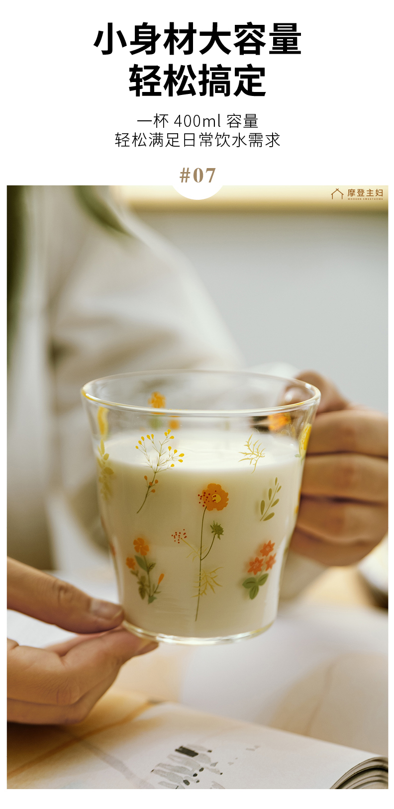 摩登主妇小枝荨玻璃杯耐高温果汁牛奶杯高颜值喝水杯2024新款杯子