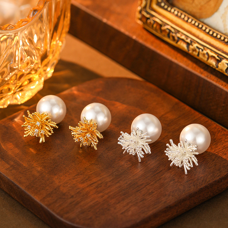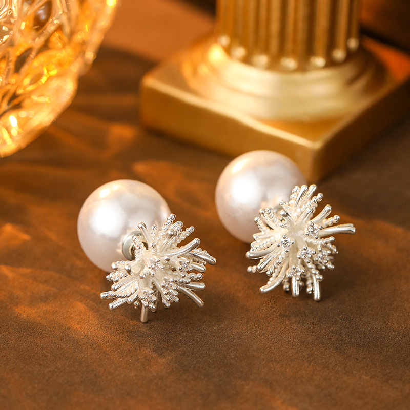 雀说新款前后戴烟花珍珠耳环女小众设计感时尚独特耳钉一款两戴耳饰品AL1092