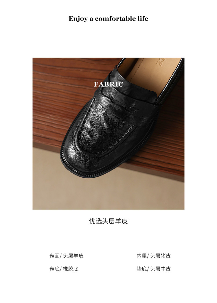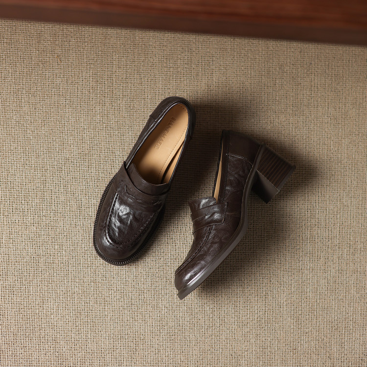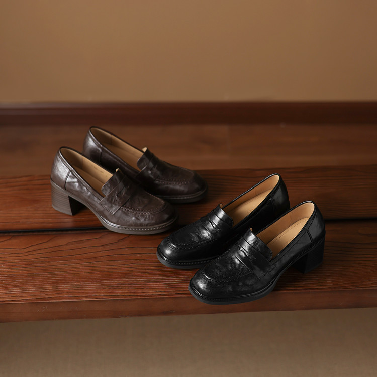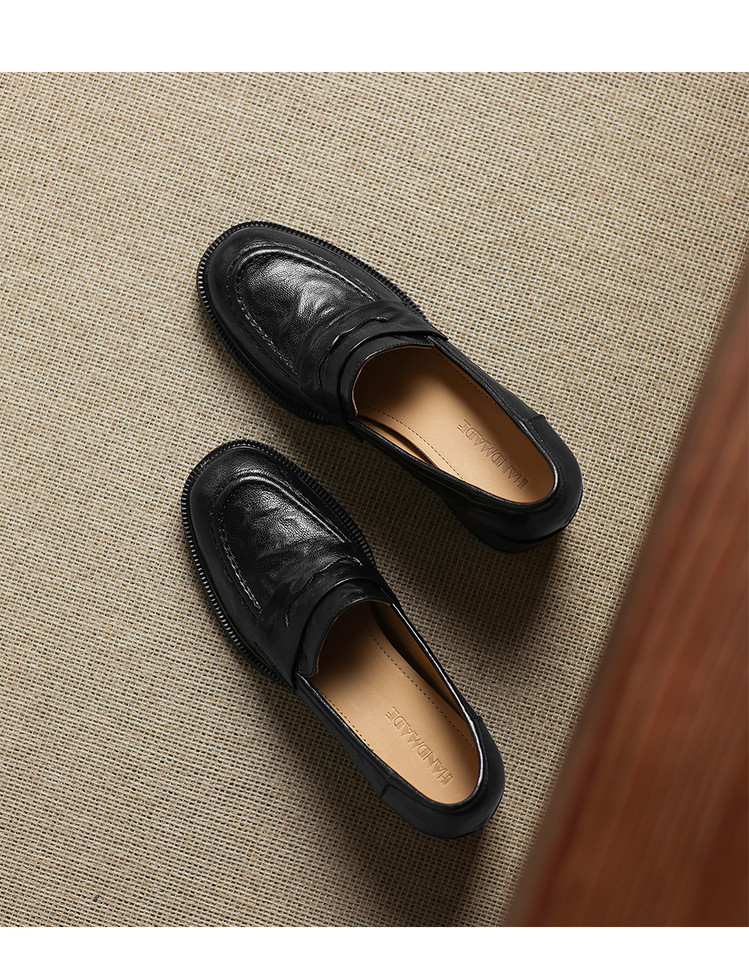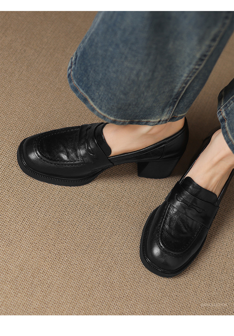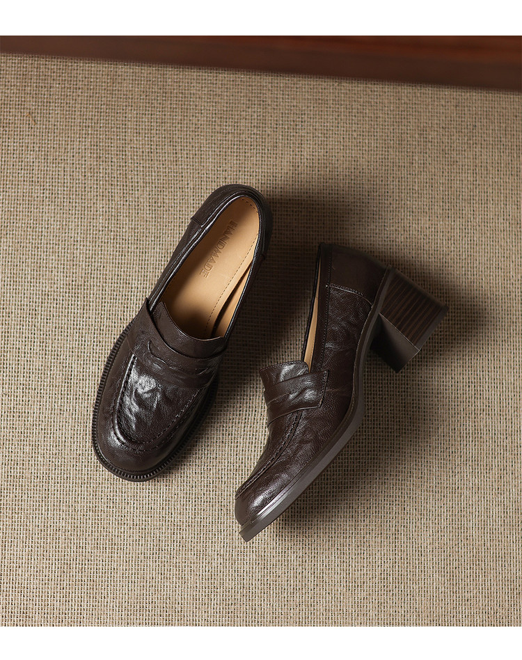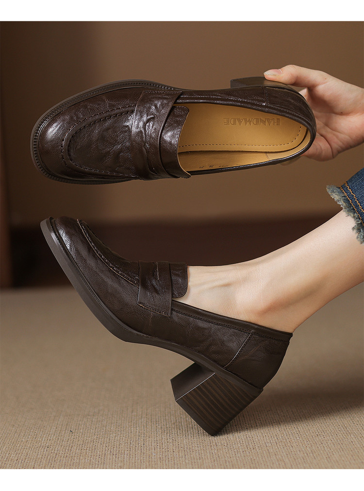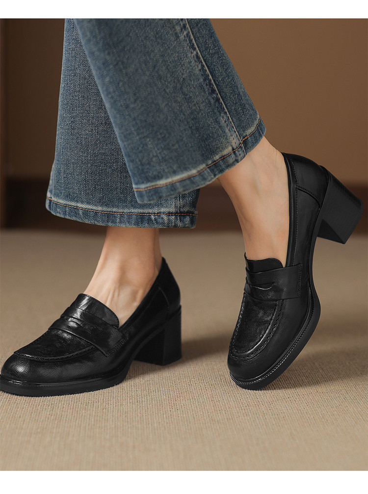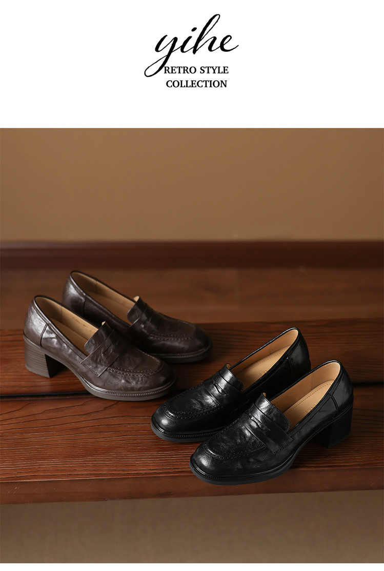 【预售5天】乐福鞋春秋季质感气质头层羊皮圆头高跟舒适百搭单鞋英伦风粗跟HB&5569