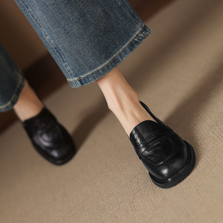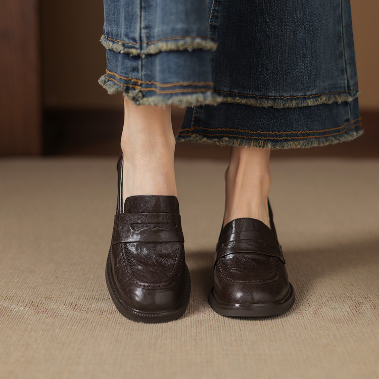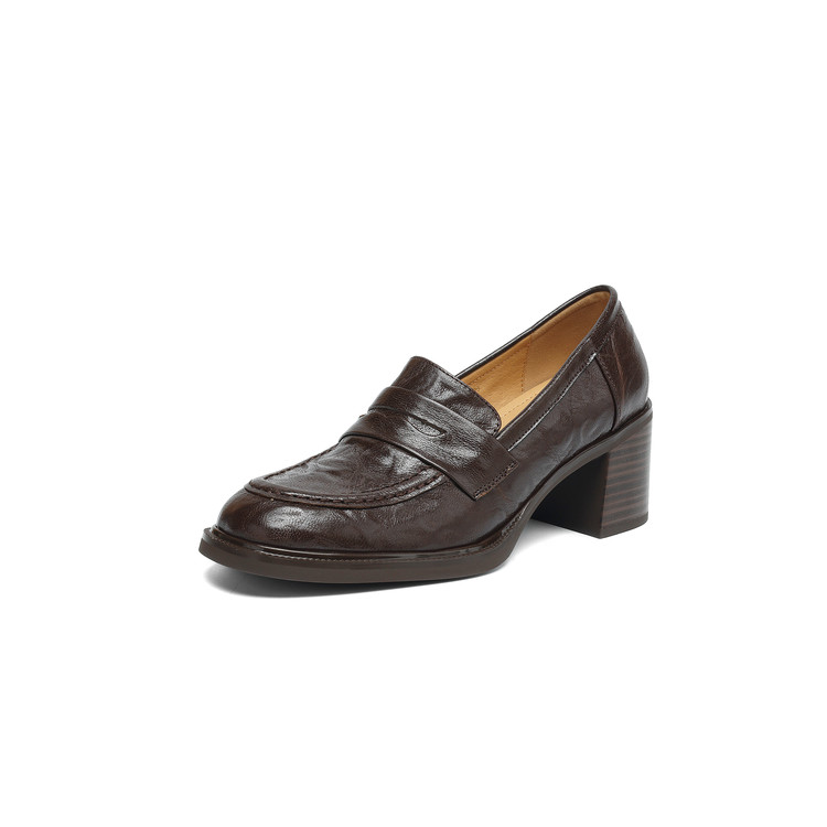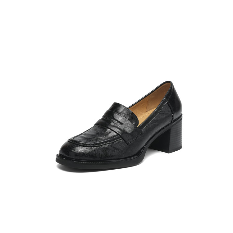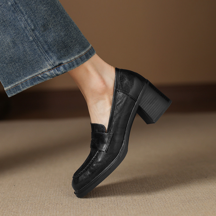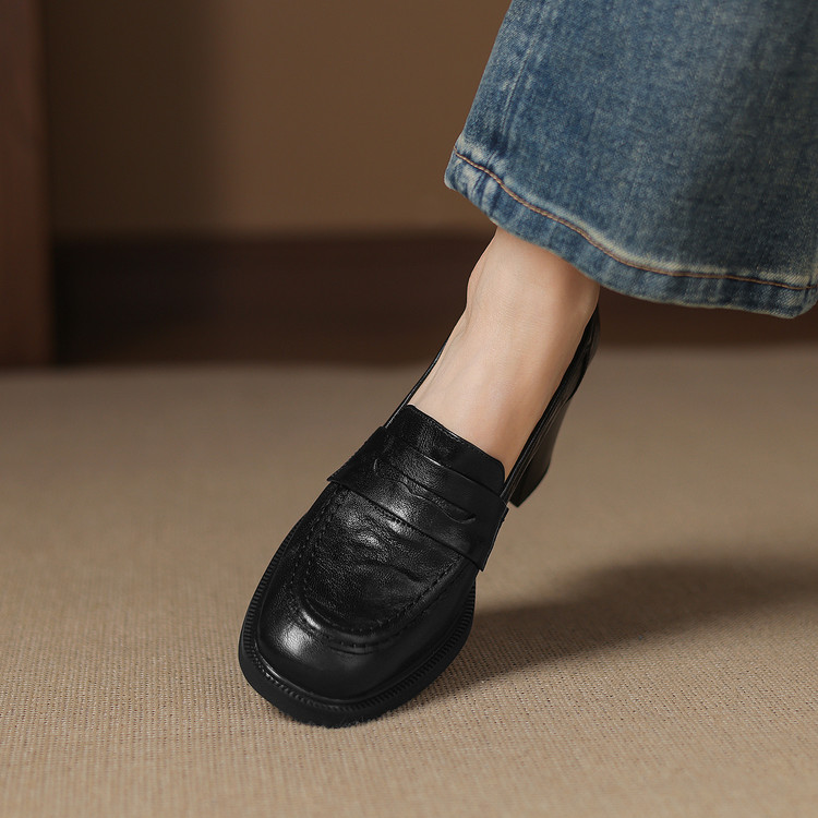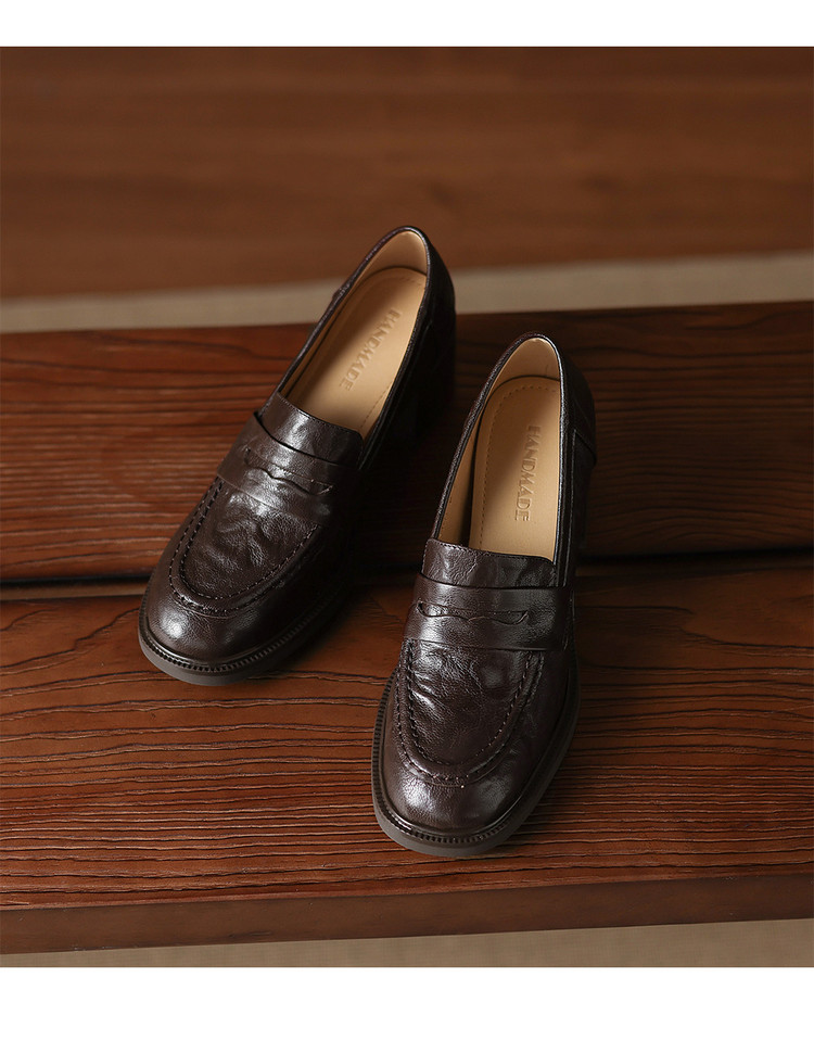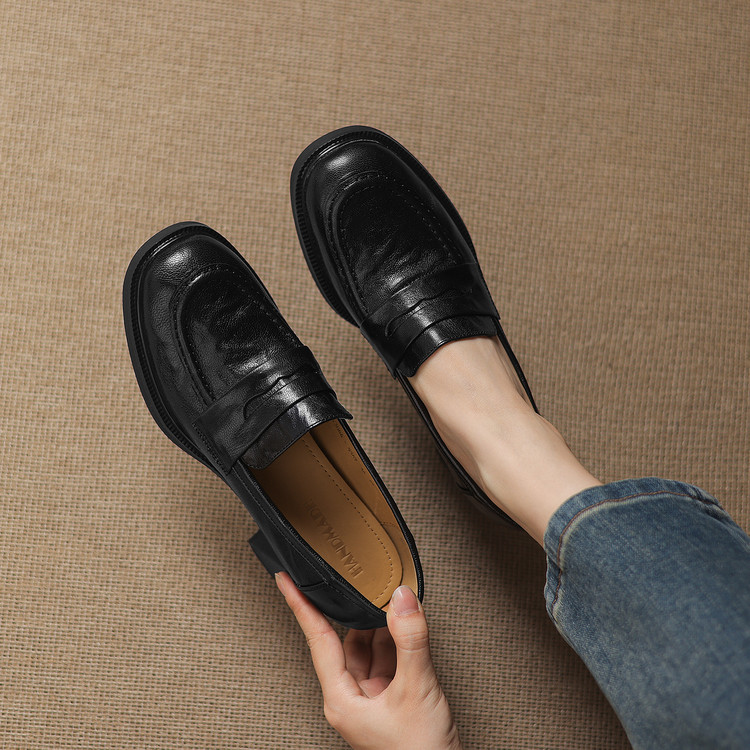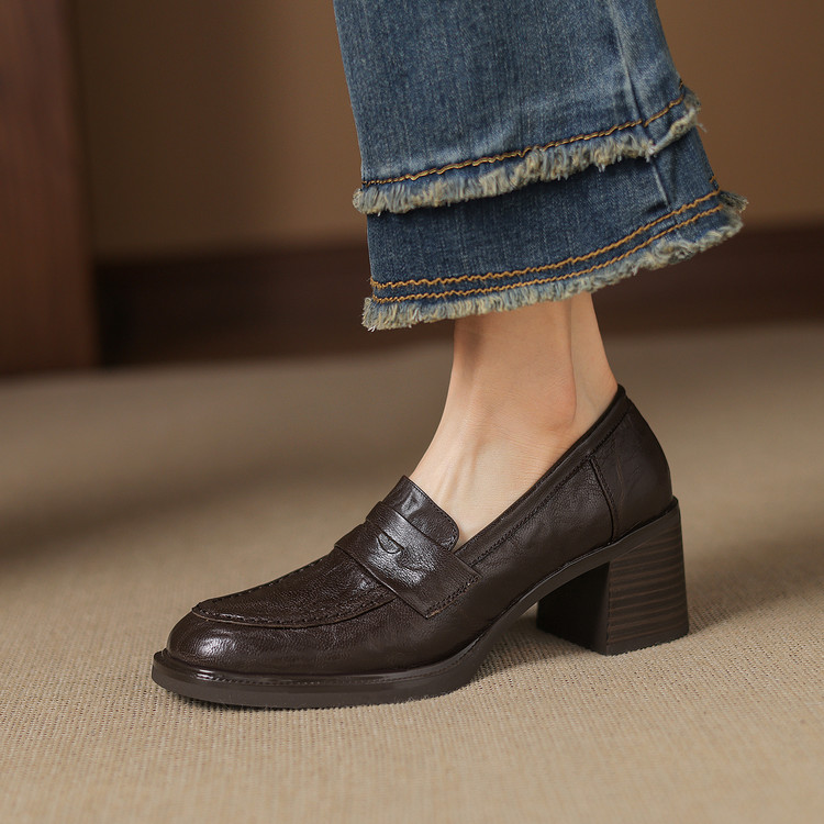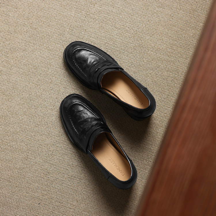 【预售5天】乐福鞋春秋季质感气质头层羊皮圆头高跟舒适百搭单鞋英伦风粗跟HB&5569