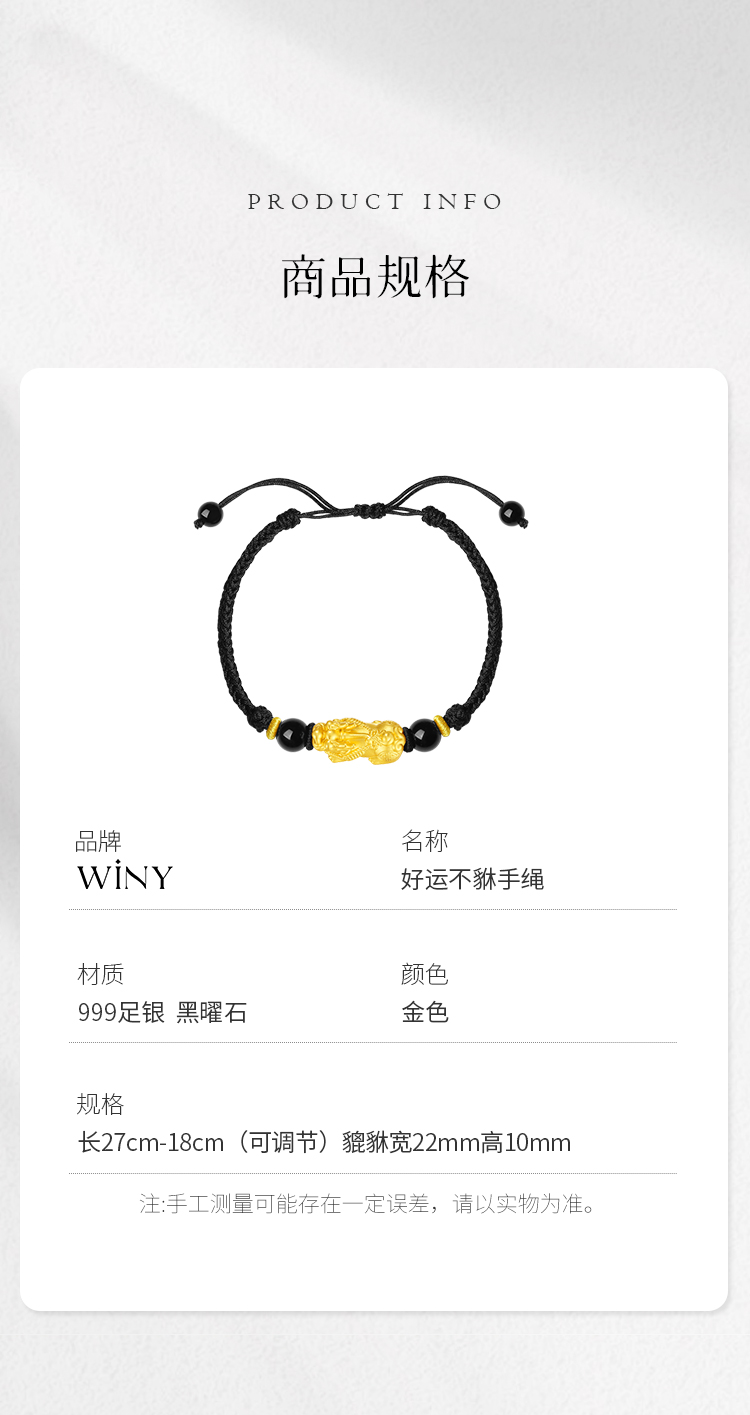 Winy999足银好运不貅手绳送女友闺蜜节日生日礼物