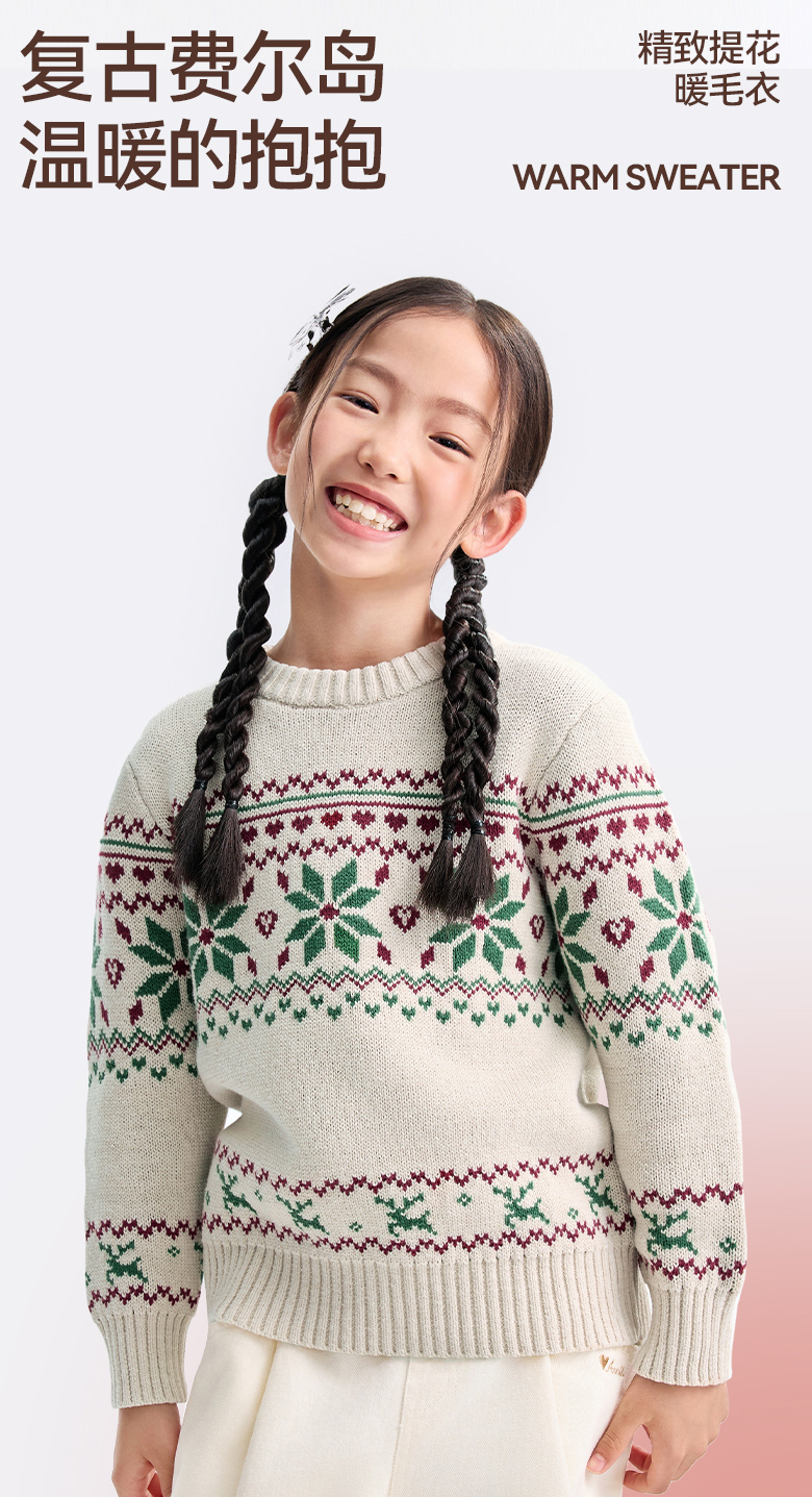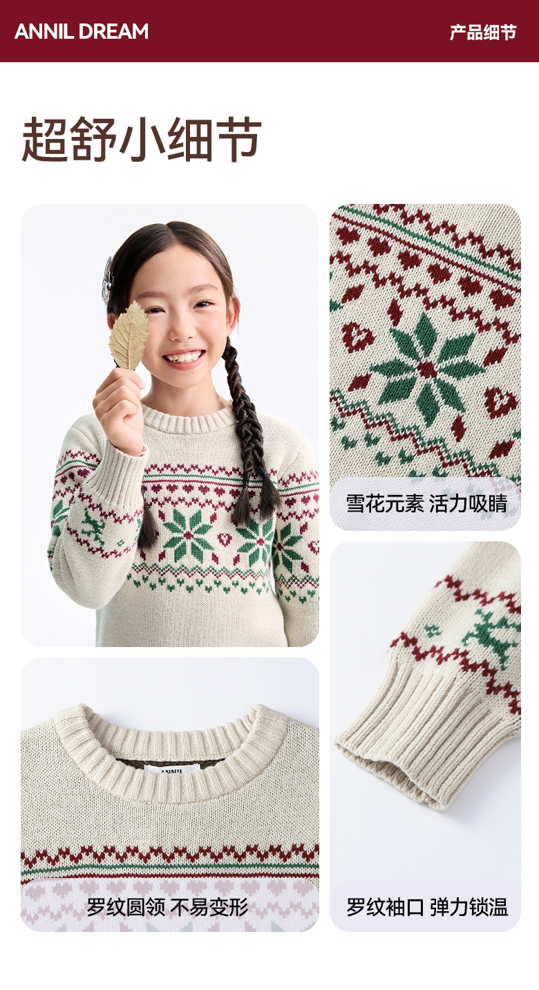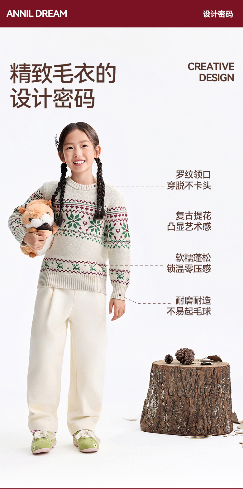 女童圆领长袖针织衫冬季新款安奈儿童装EG544639