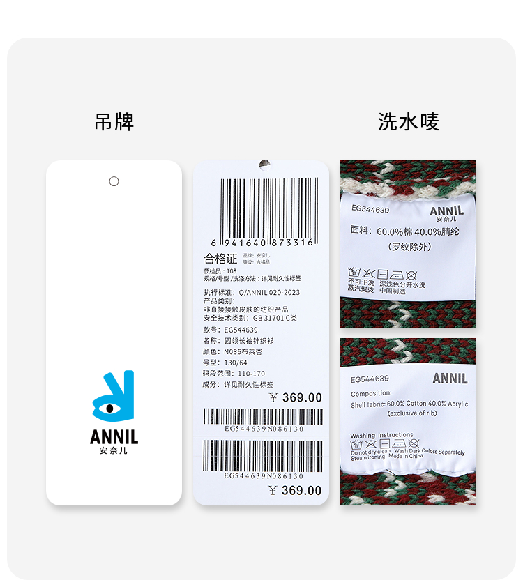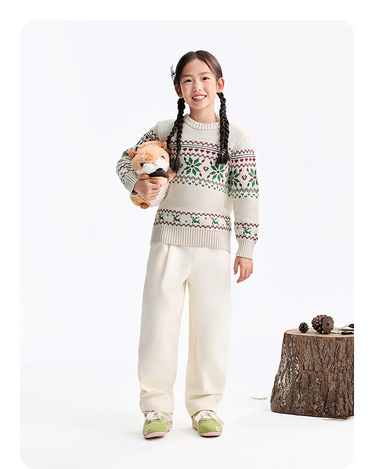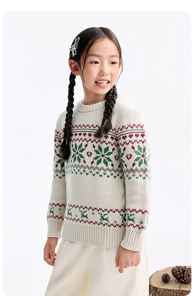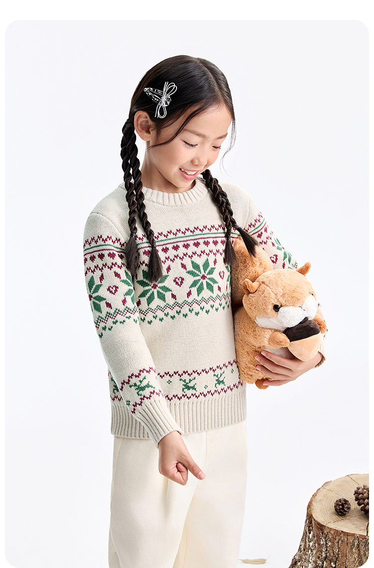 女童圆领长袖针织衫冬季新款安奈儿童装EG544639