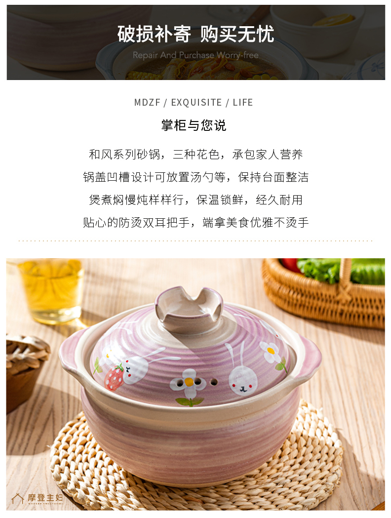 摩登主妇砂锅炖锅家用煤气灶专用耐高温煲仔饭煲汤炖汤沙锅砂锅煲