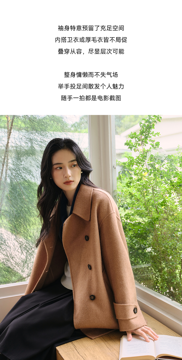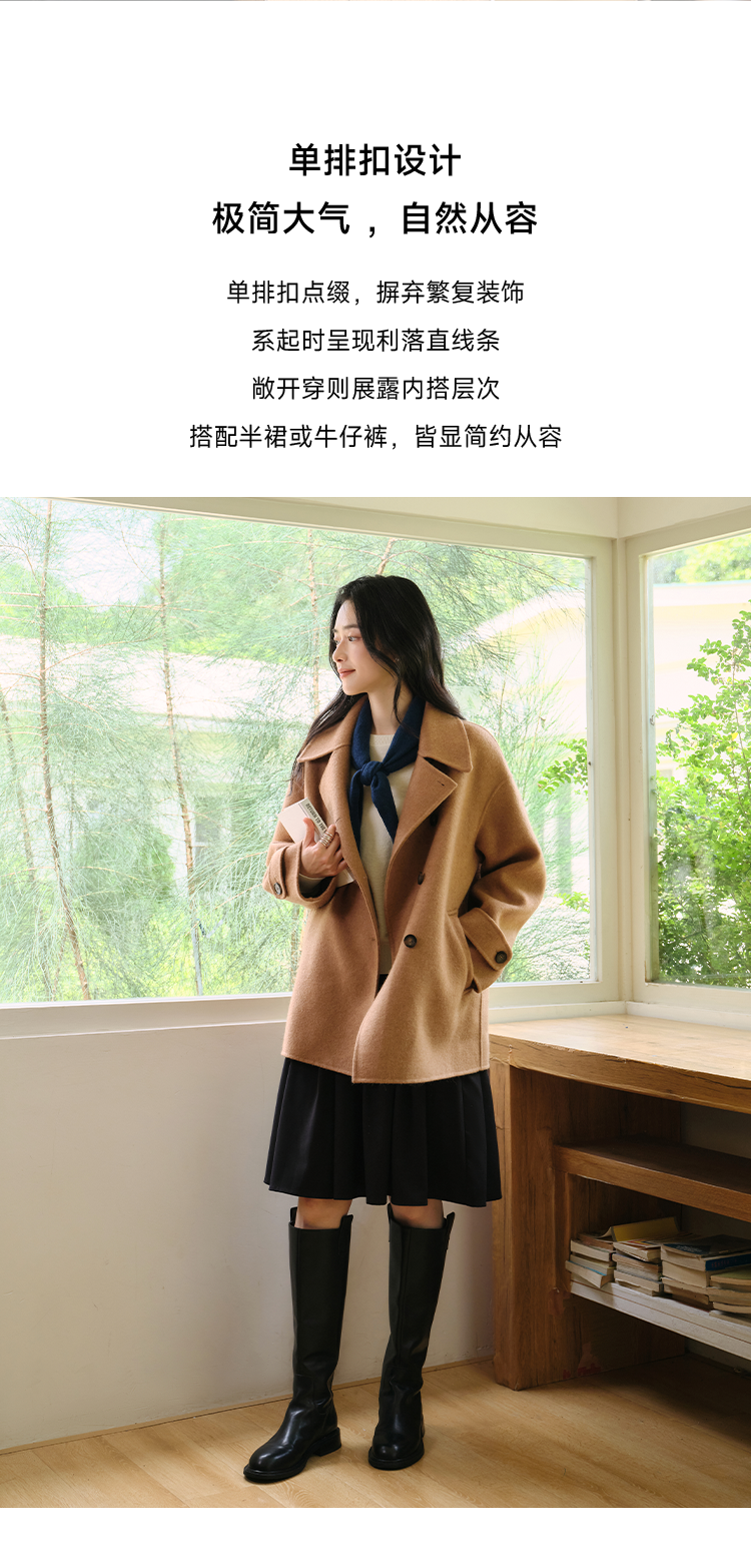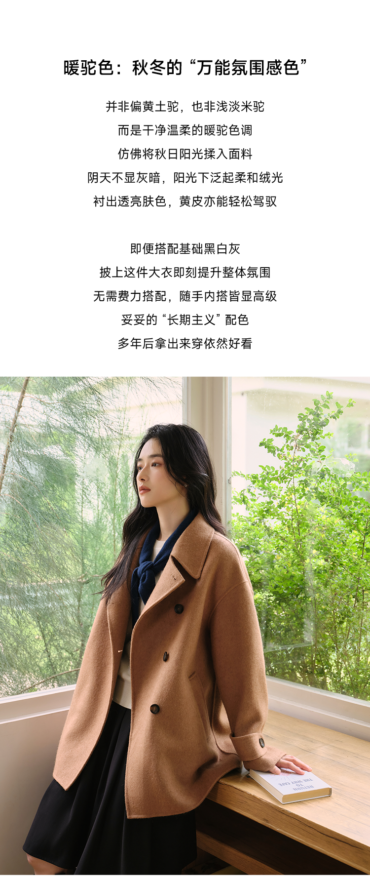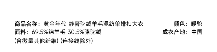 黄金年代 静奢驼绒羊毛混纺单排扣大衣FCF3OVC017