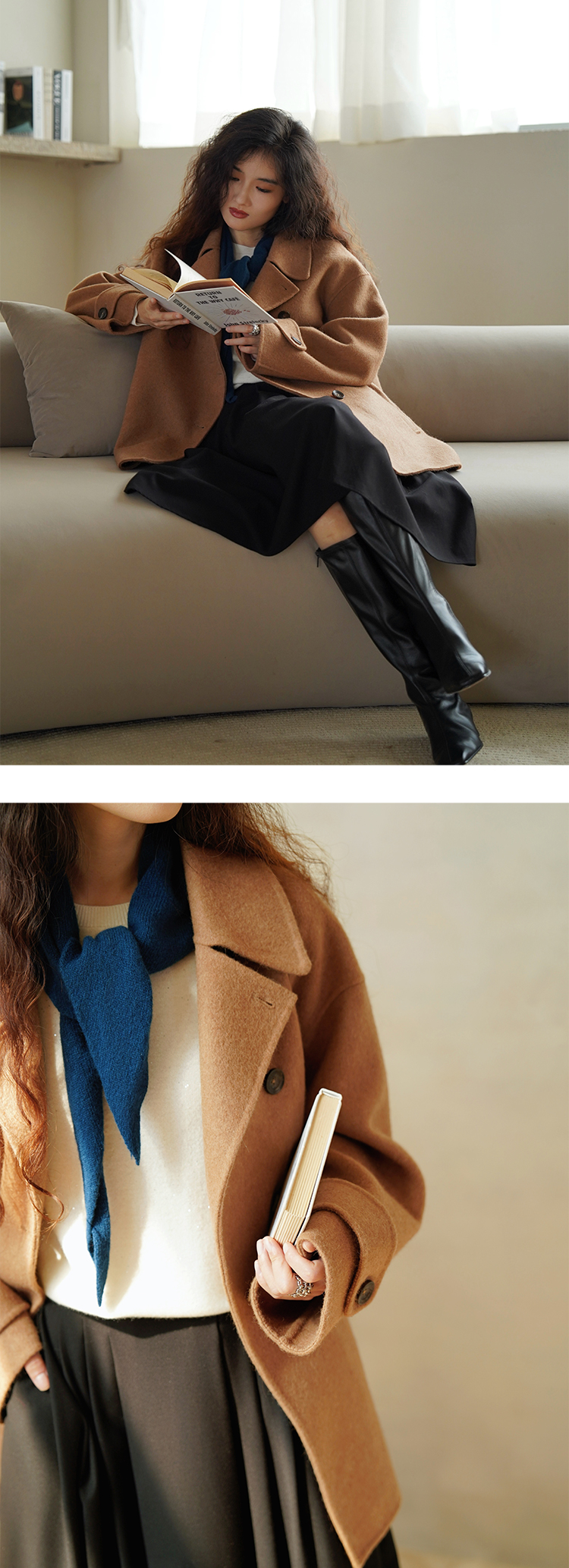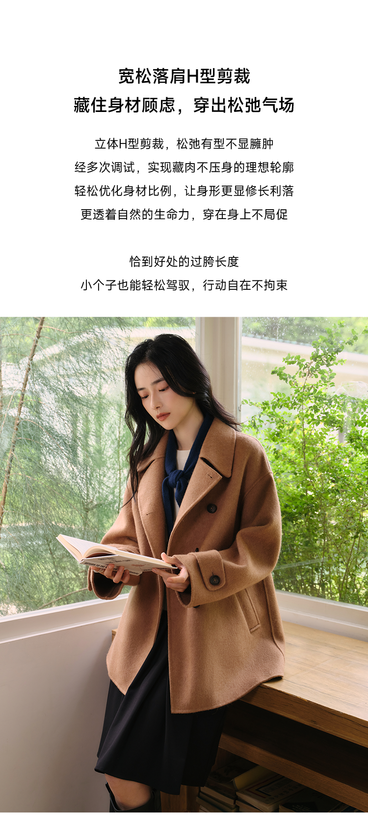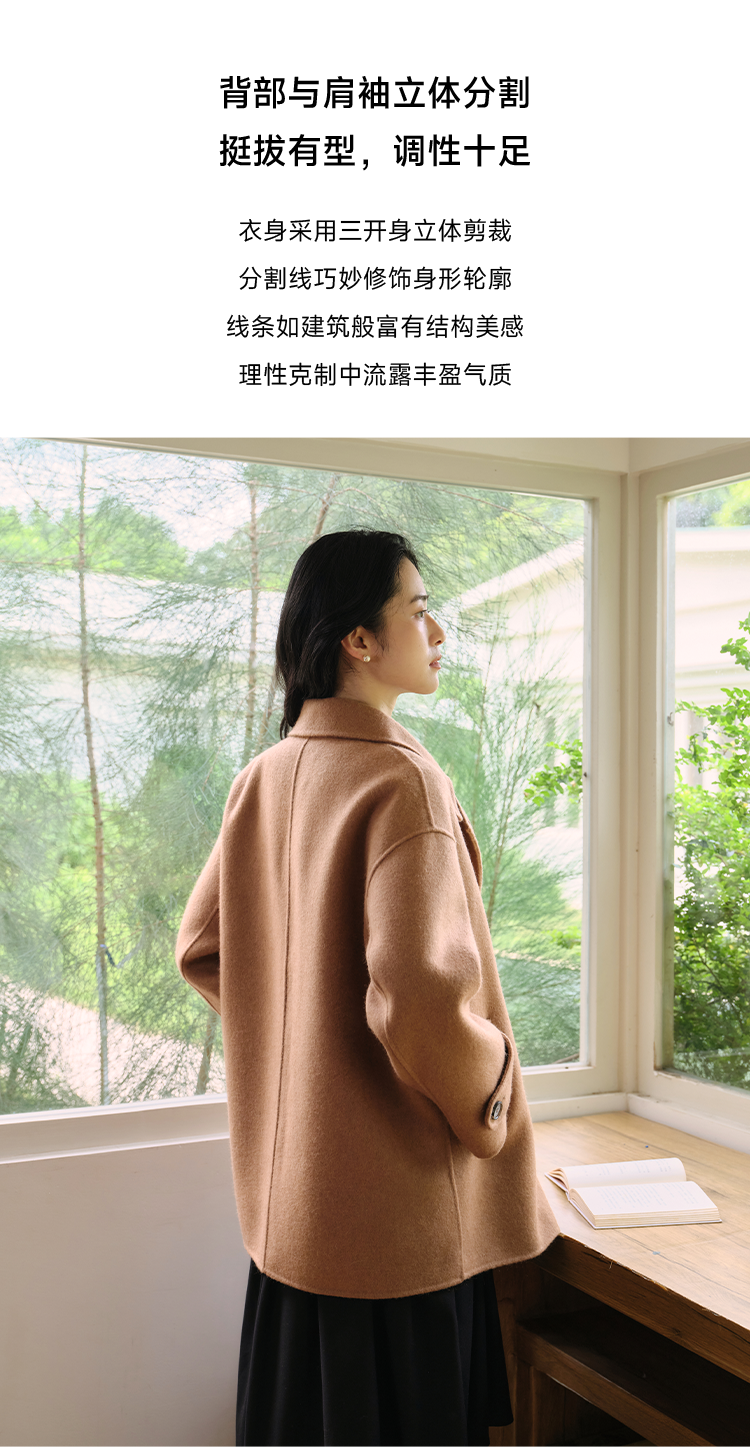 黄金年代 静奢驼绒羊毛混纺单排扣大衣FCF3OVC017