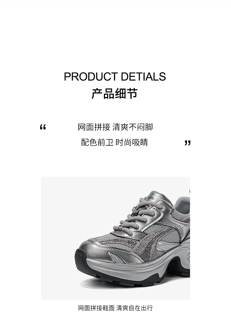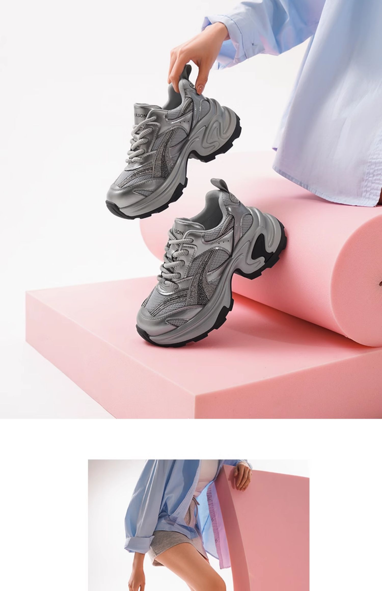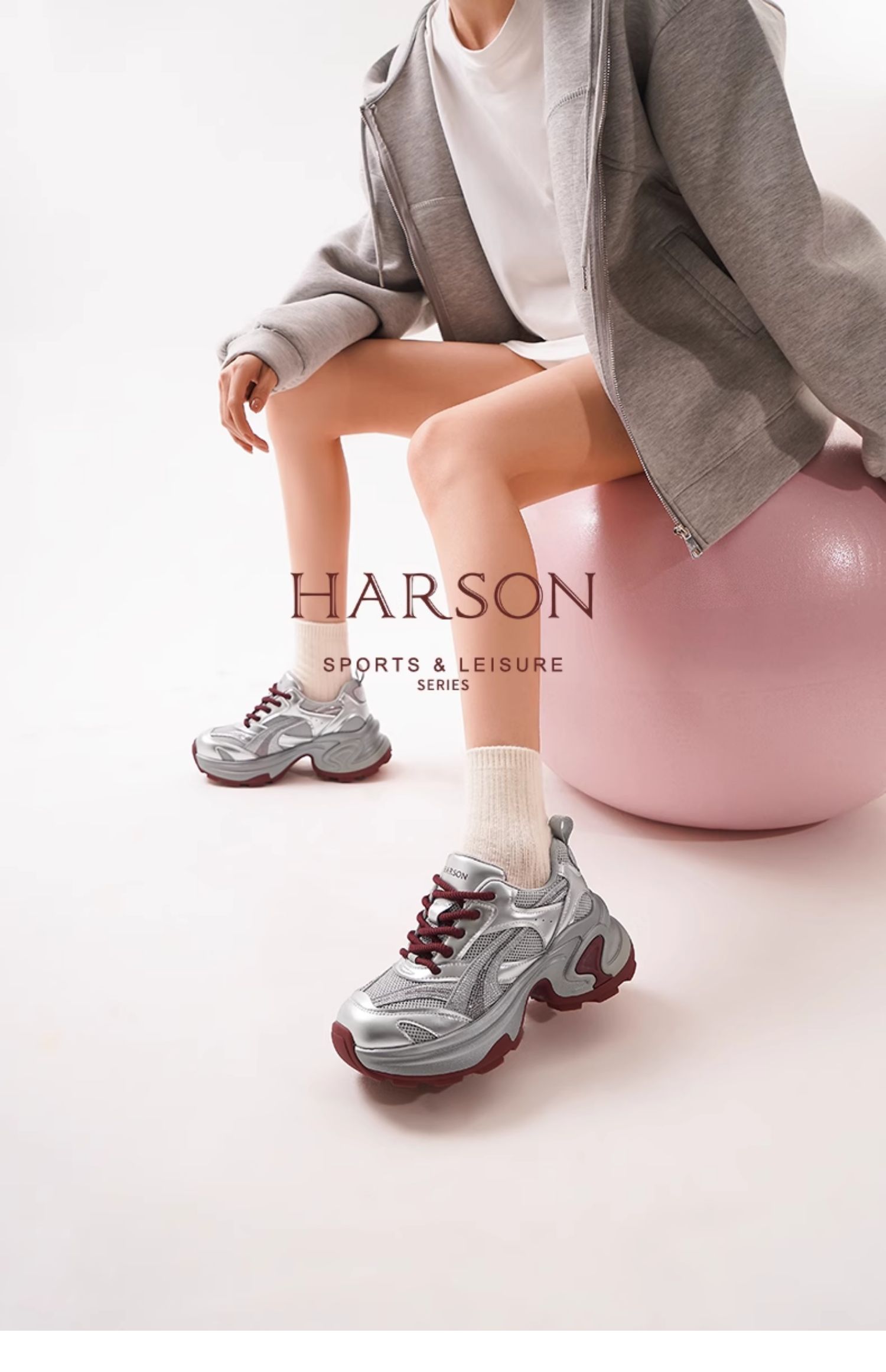 哈森厚底网面老爹鞋女2025春季新款潮流个性休闲运动鞋HCS251605