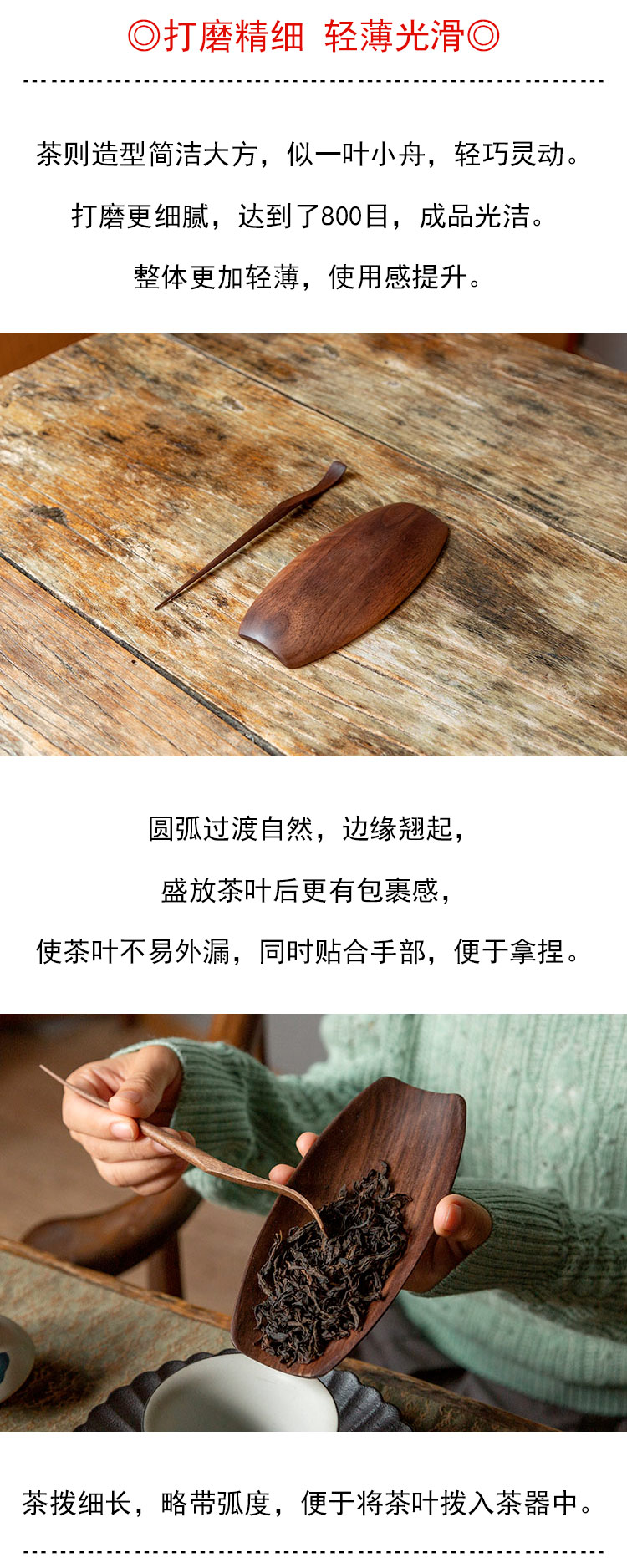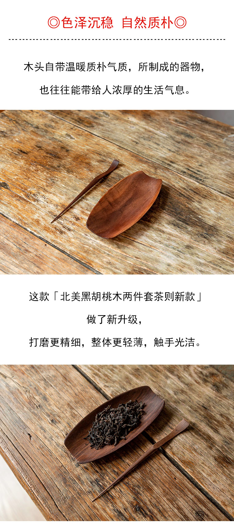 茶香记 北美黑胡桃木 两件套茶则新款 茶道配件 自然质朴 简约