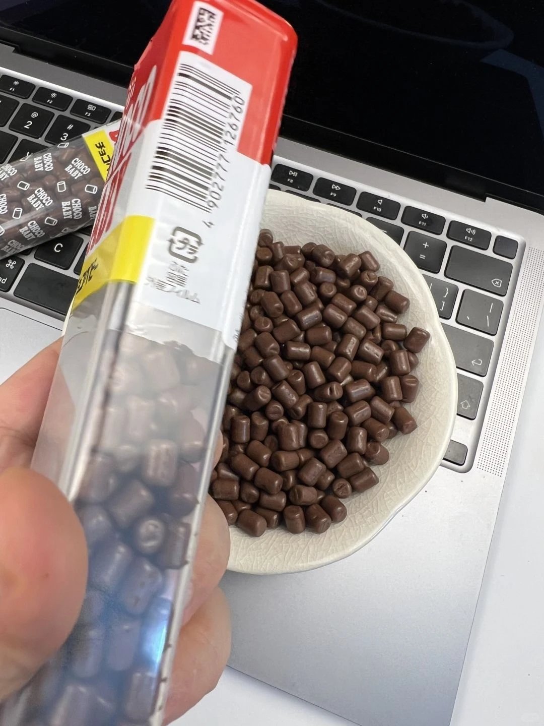 别看它小小一颗,但是巧克力味贼浓郁! 口感奶香奶香的,不甜腻! 我真的一颗一颗都不够吃! 直接一桶倒着吃,嘎嘎香! 是纯可可脂的巧克力豆哦! 大人,小孩可以放心吃~ 记得有个朋友说,他家孩子8岁了 没吃过巧克力 ,就怕是代可可脂 其实只要选对啦,完全可以放心吃啊 就像这款明治巧克力豆,放心吃就行~ 毕竟孩子的童年大部分的快乐都来自零食