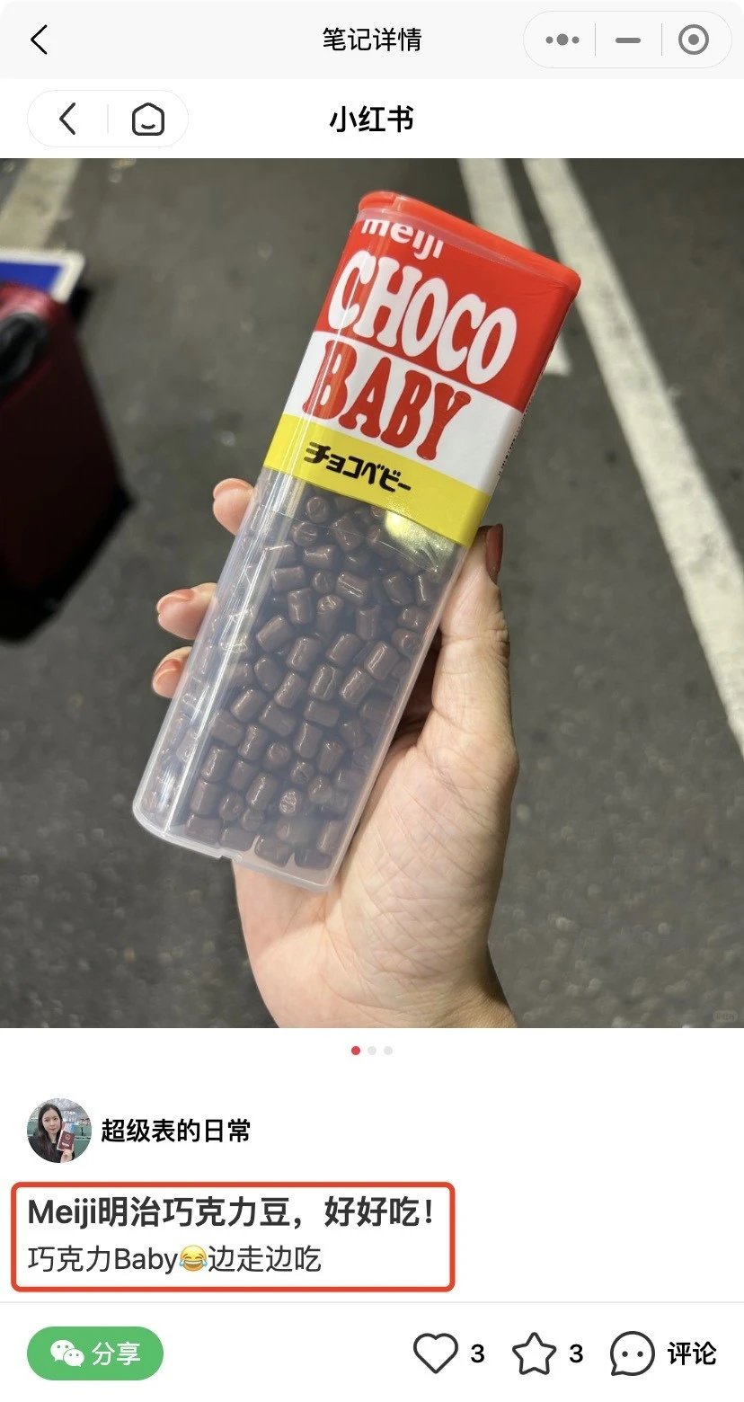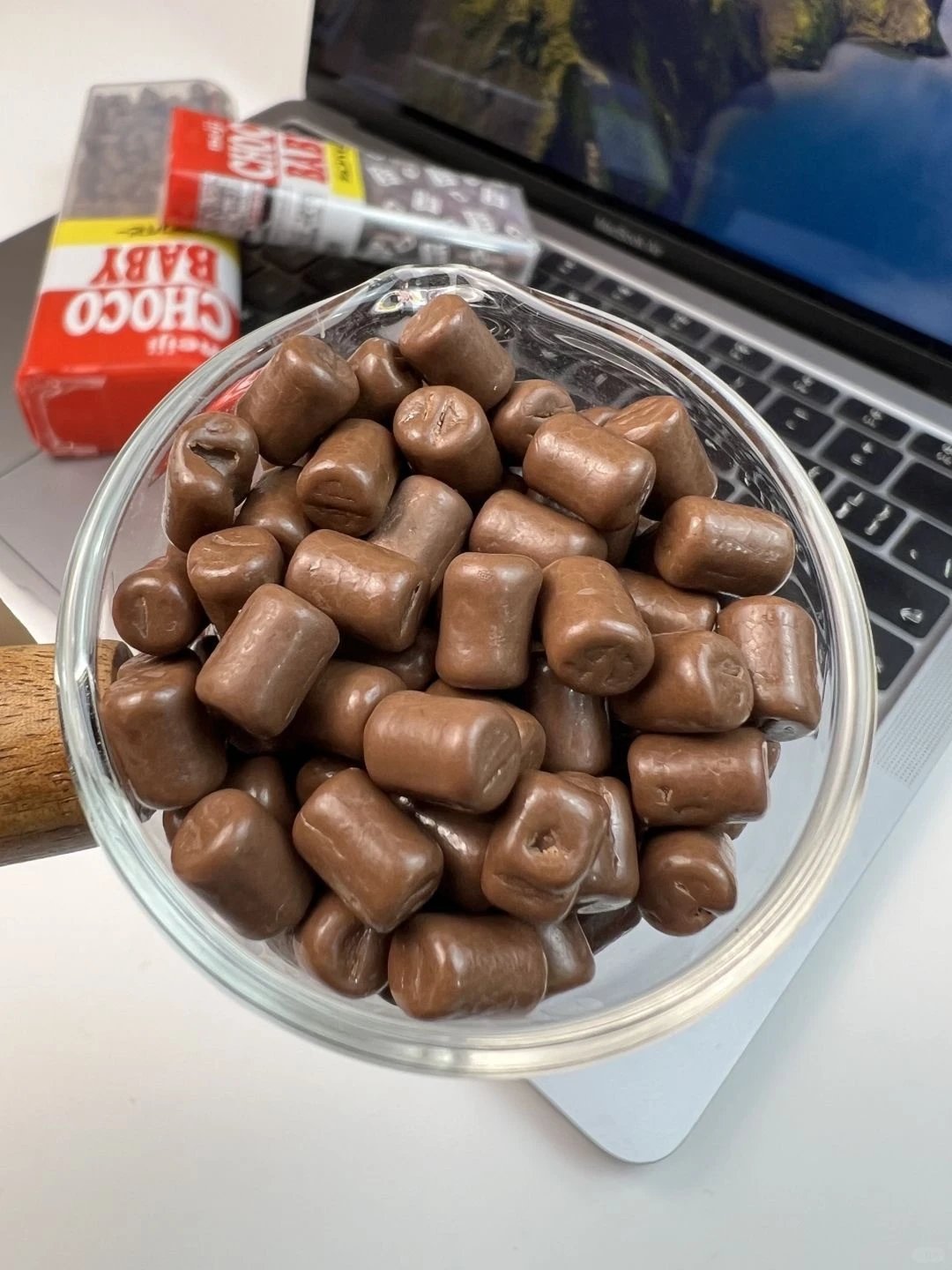 Meiji明治巧克力豆 明治家巧克力一直都是佼佼者,都很好吃 这款明治巧克力豆,简直不要太好吃! 整瓶直接炫嘴里嘎嘎香~ 入口香浓丝滑,甜甜蜜蜜的,不齁甜也不腻 吃巧克力真的会有幸福的感觉 ,没事嚼两粒~ 我家囤的这份明治巧克力豆 名义上是给娃娃买的 其实我吃的比她还多 平时没事,总喜欢嚼上两粒 不得不承认,偶尔吃点小甜食,真的很治愈
