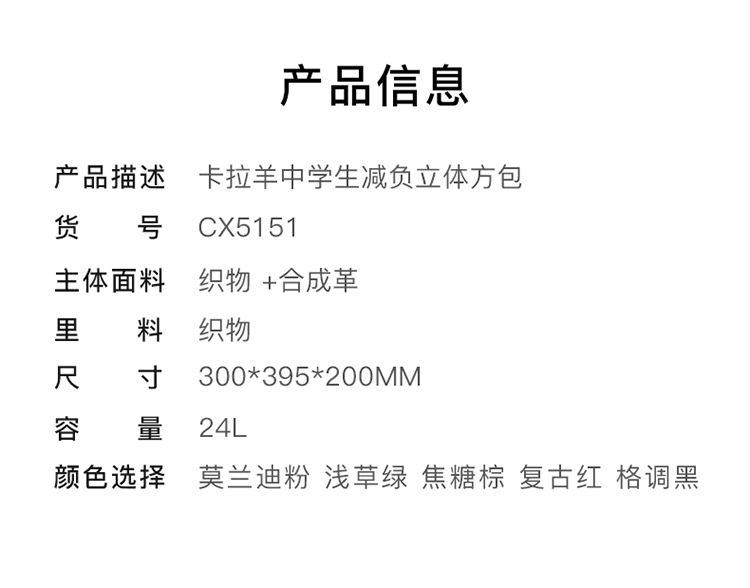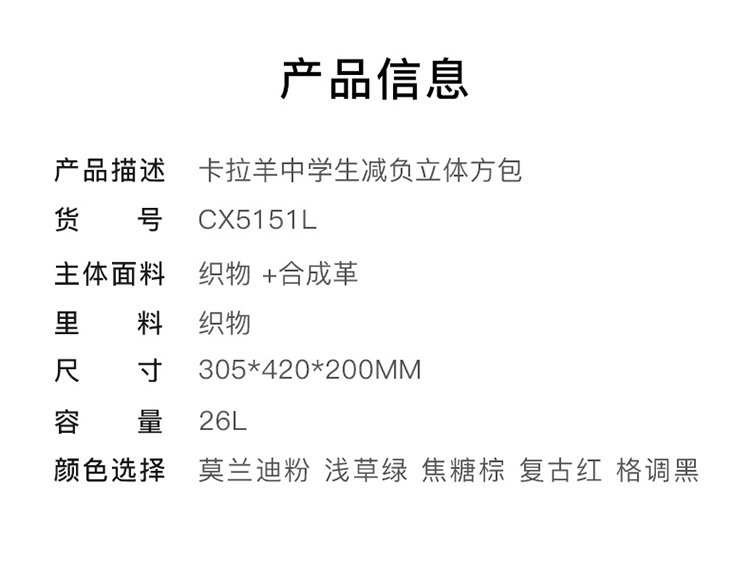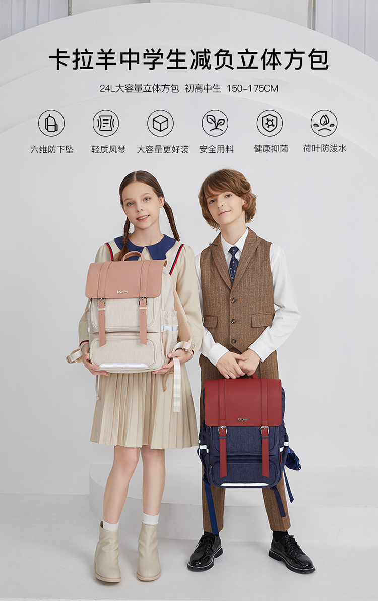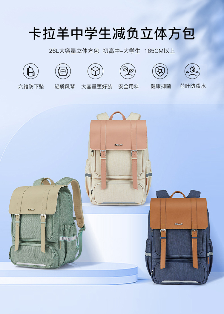 卡拉羊中学生24L/26L防下坠减负立体方包 氧气森林CX5151/L
