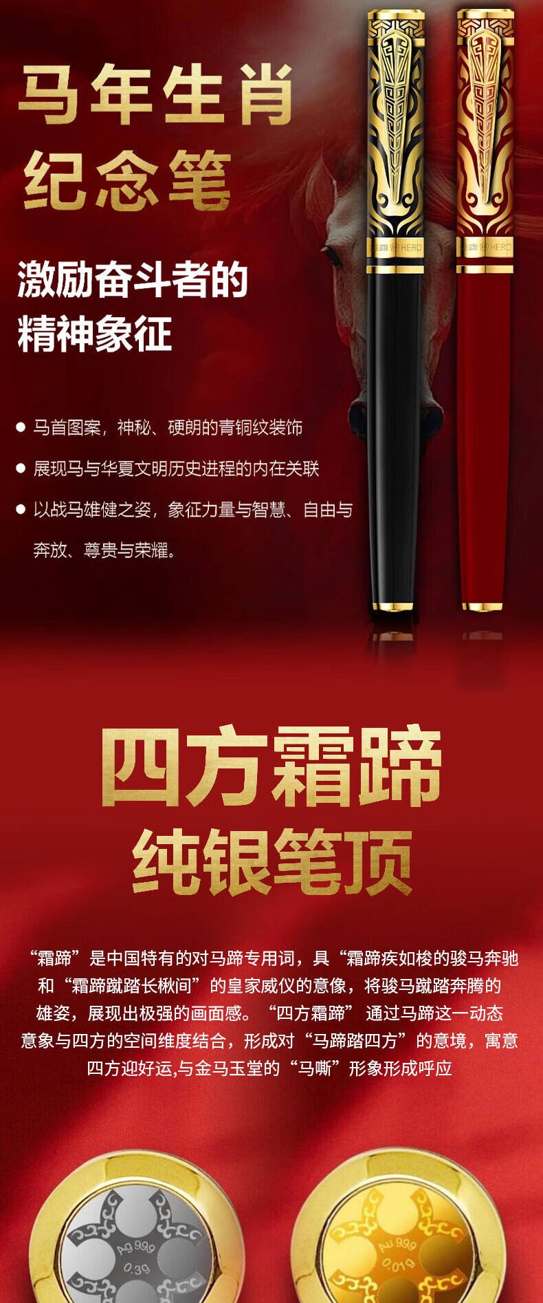 【马年新品】2026马年生肖纪念银钢笔 英雄钢笔 商务送礼