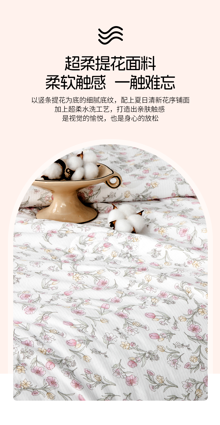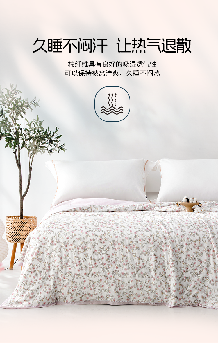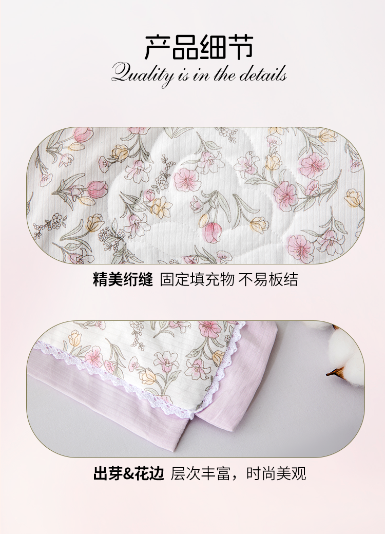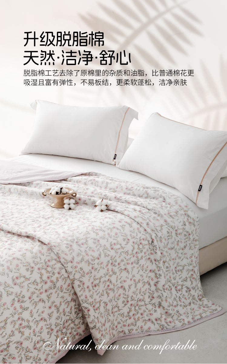 【会员专享】多喜爱 沁夏花序棉花夏薄被芯/空调被(慕斯粉)【花边&出芽】【100%新疆棉】【升级脱脂棉】【提花面料】【A类抑菌】多层铺垫超柔水洗