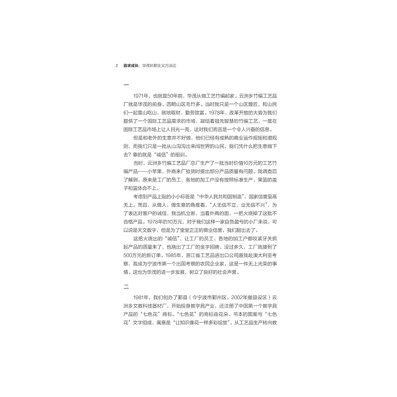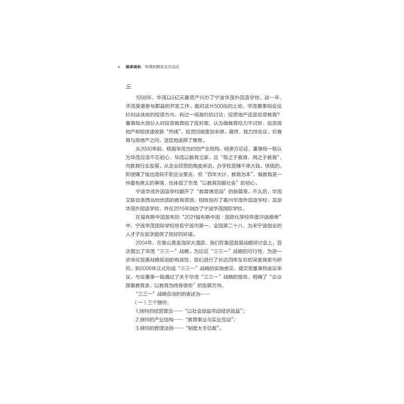 所以本书的一个显著的特点是——没有“孤峰”。它没有孤立的内容,所有的内容都处于“华茂成长三角形”这一框架体系之内,这一框架体系是我们基于华茂50年长期主义管理实践而进行的发现、总结和提炼。