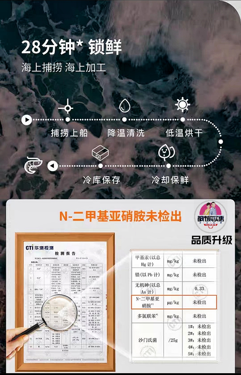 都市购实惠品控保证野生秋虾皮的虾肉饱满和新鲜,盐度为无盐标准,渔船深海作业不做脱盐处理,保持了原生态的品相和味道,咸度为天然的海水咸度,额外不加一点盐。所以说,2024年的虾皮为宝宝辅食级别的品质,虾肉和鲜度提升了很多。