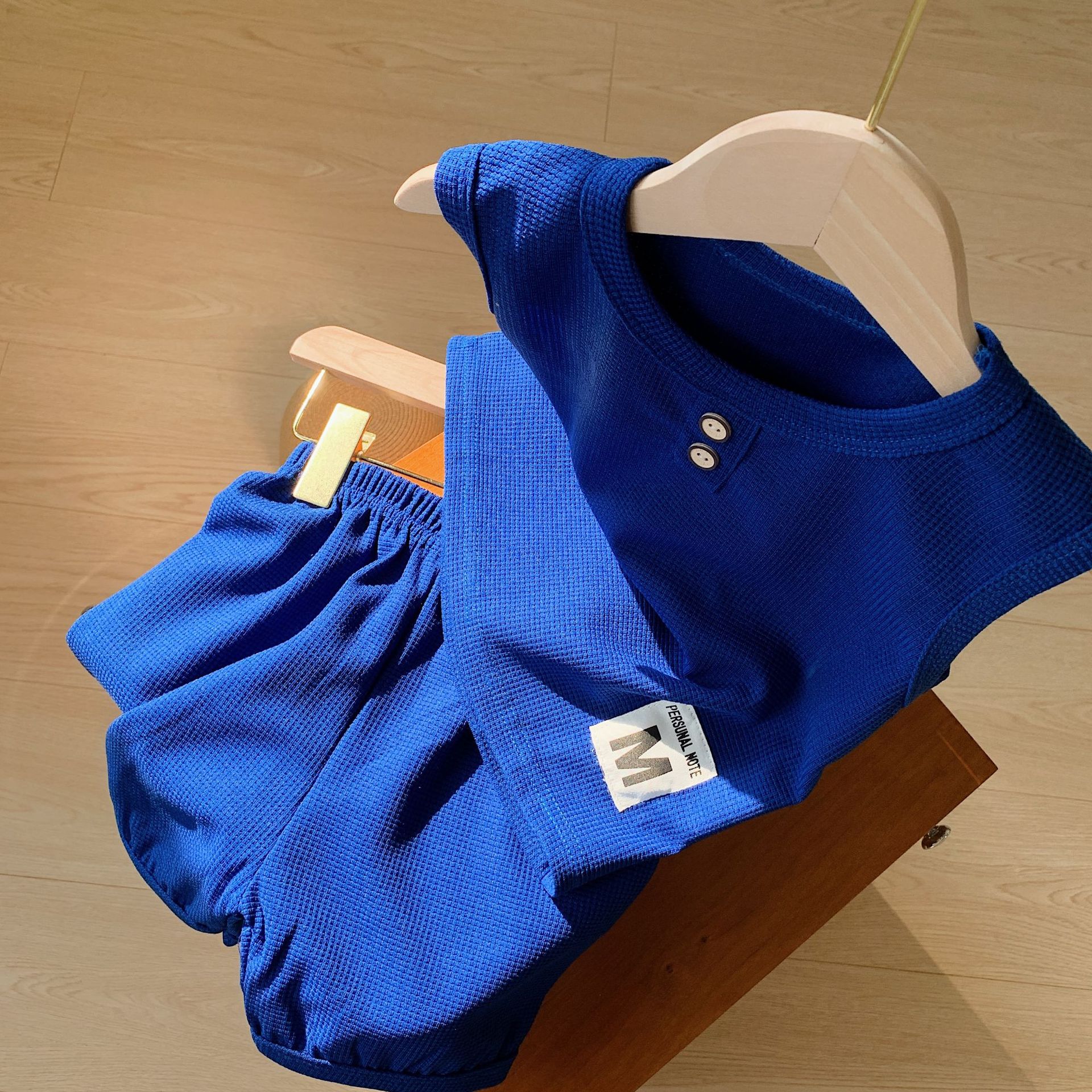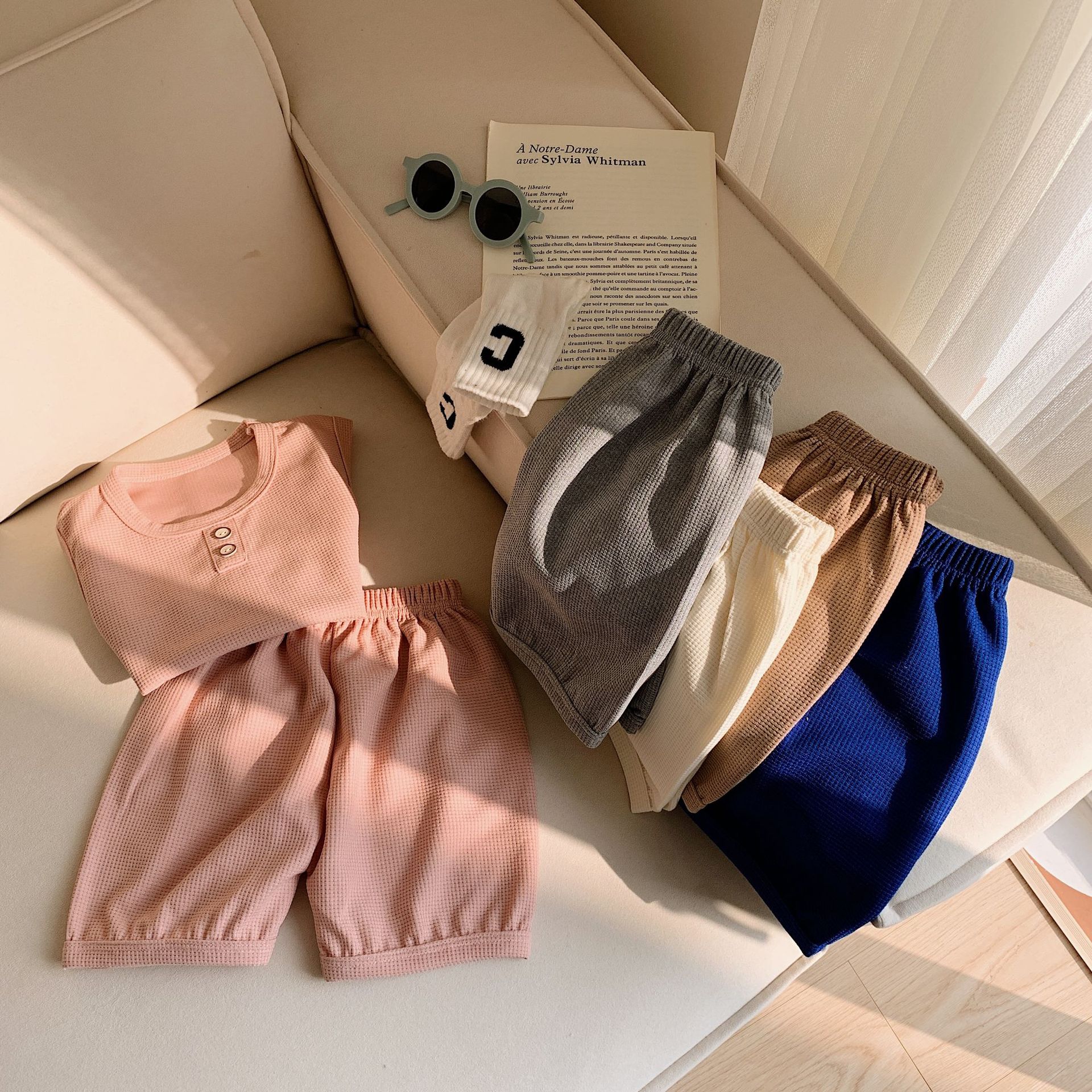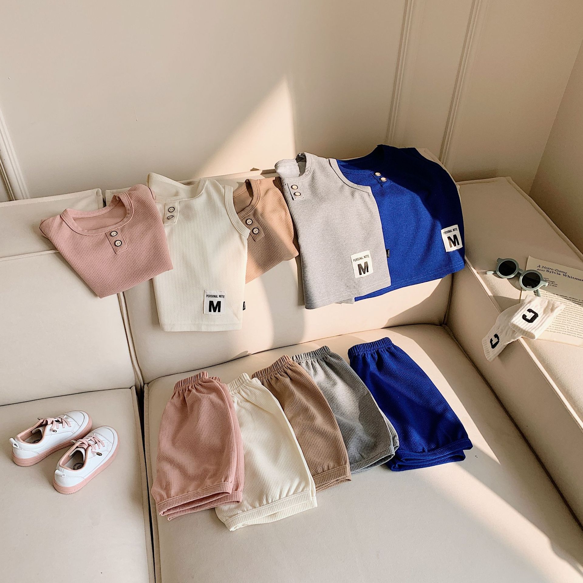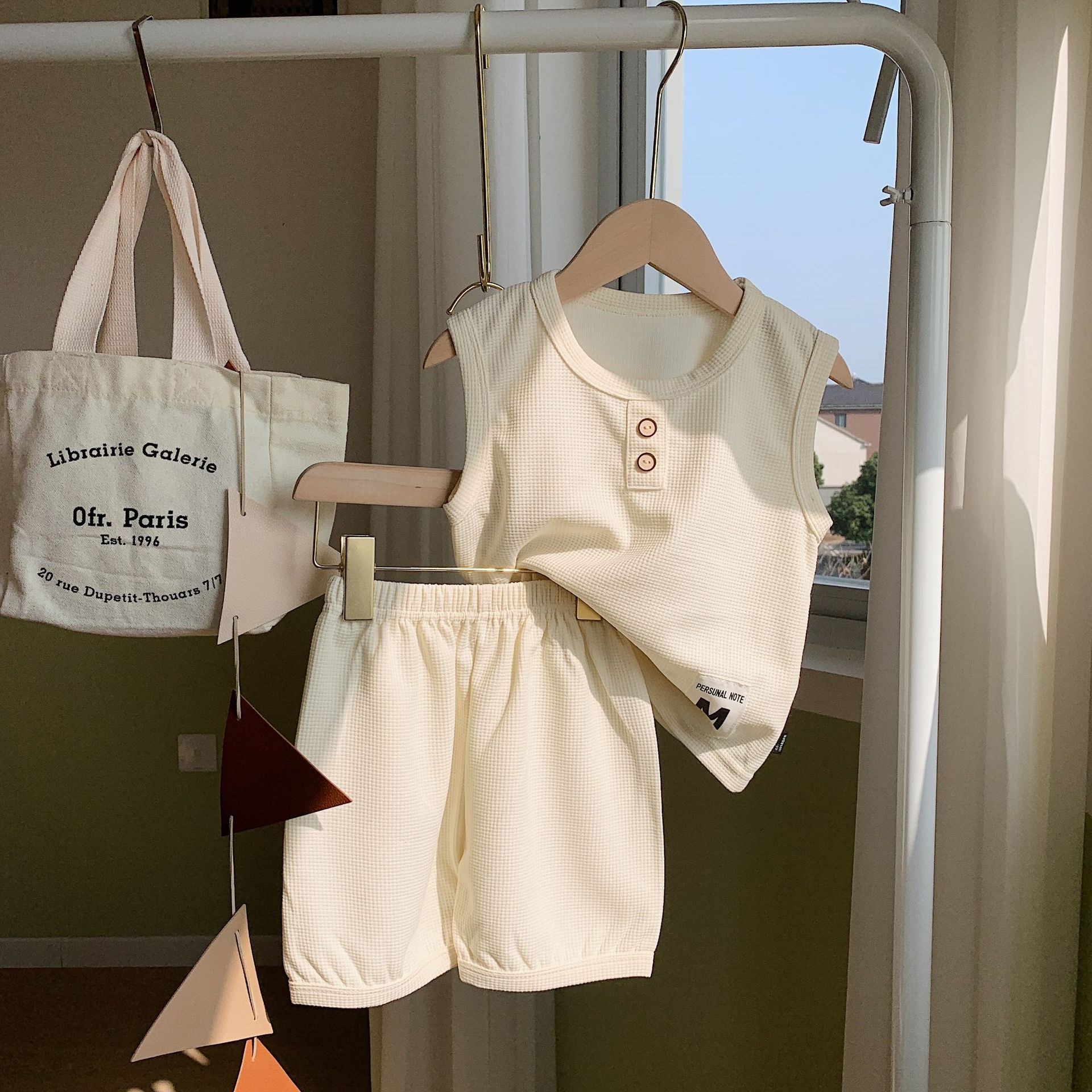 【儿童背心套装,夏日必备!】新款儿童背心套装宝宝短袖两件套,夏季童装华夫格潮童套装潮,带来清爽舒适的穿着体验!-lm