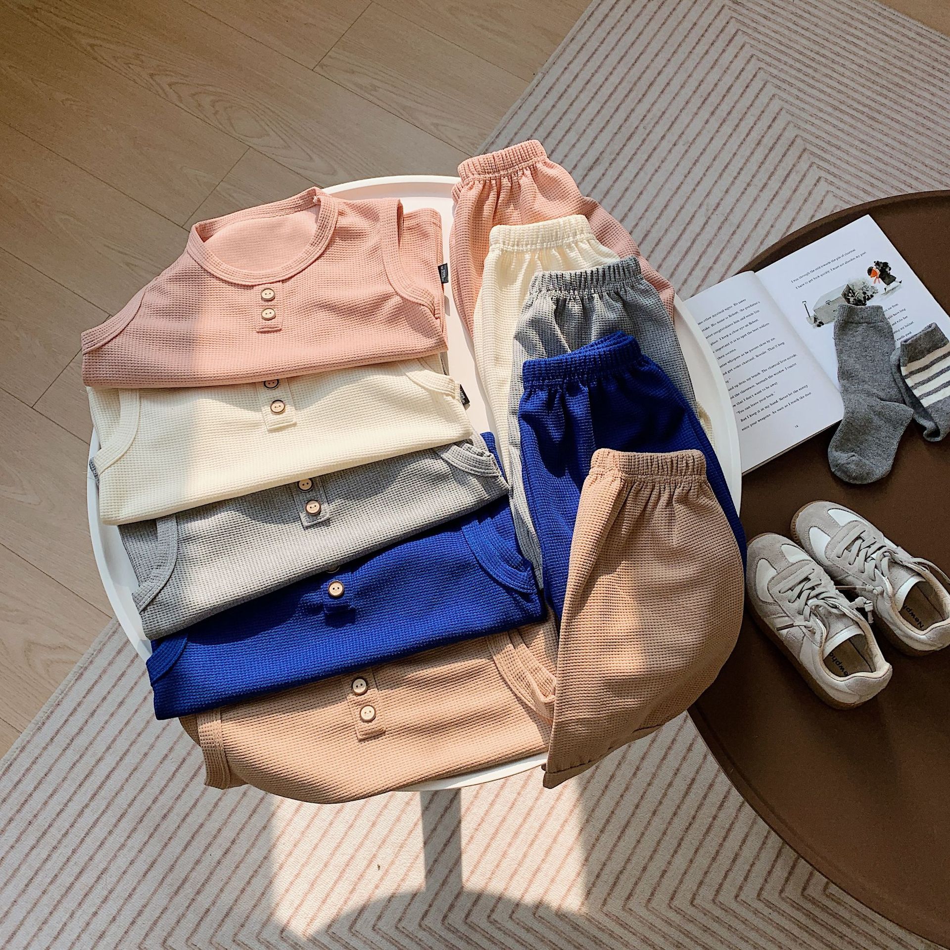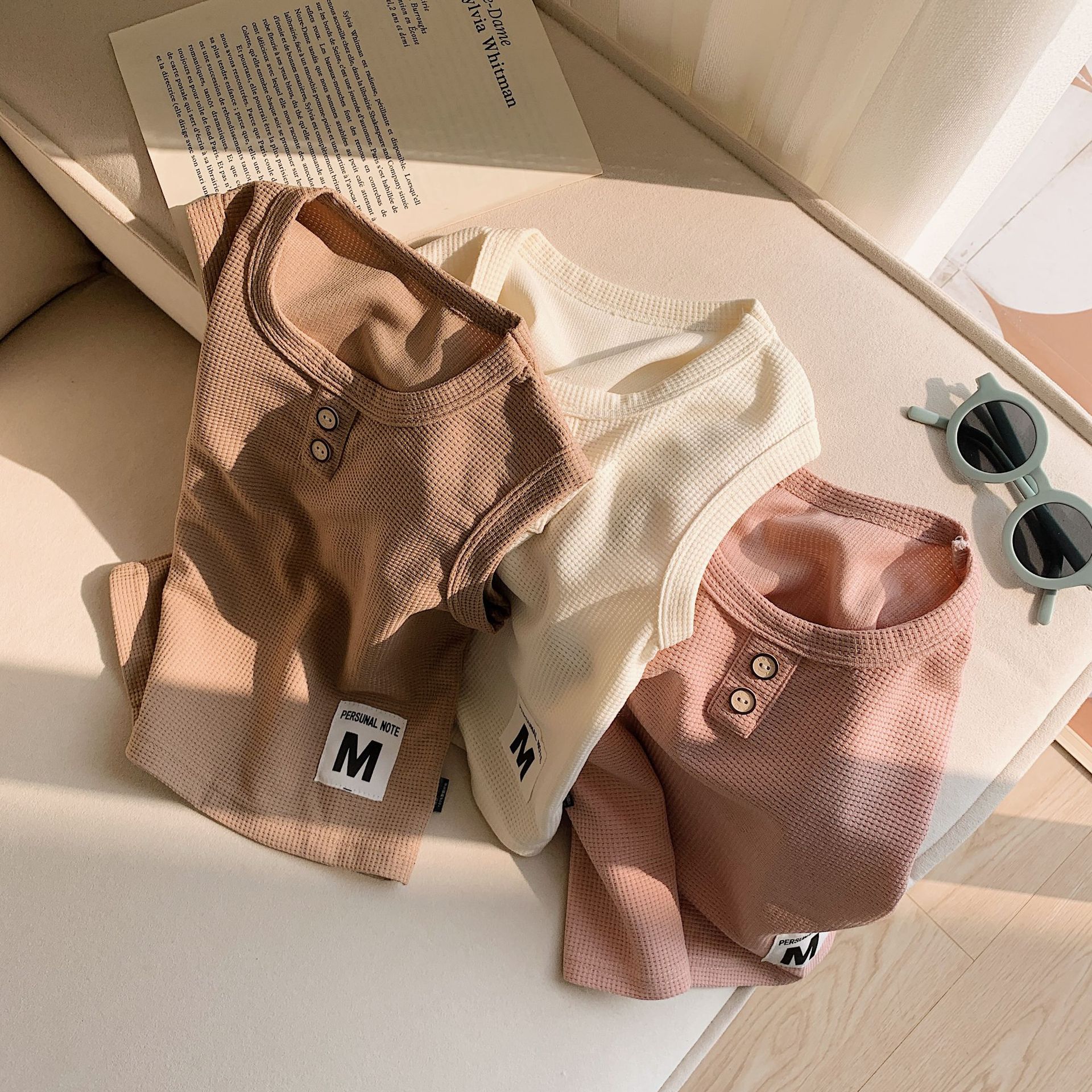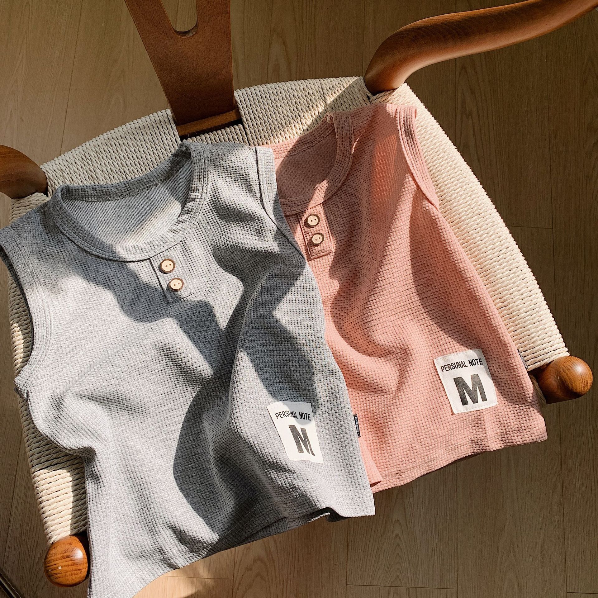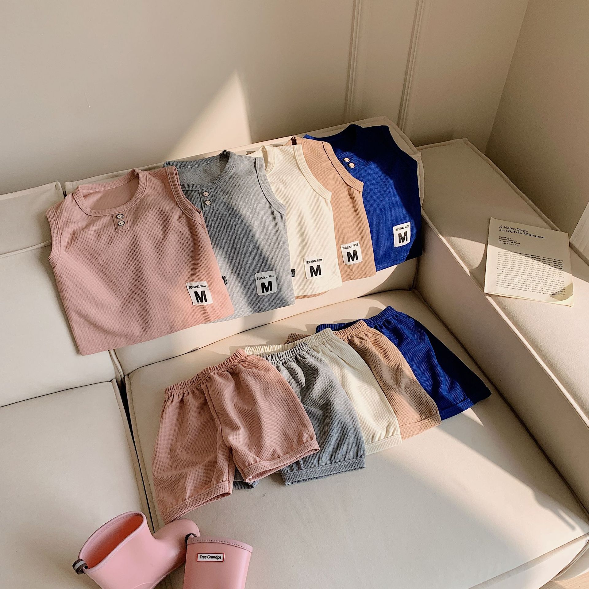 【儿童背心套装,夏日必备!】新款儿童背心套装宝宝短袖两件套,夏季童装华夫格潮童套装潮,带来清爽舒适的穿着体验!-lm