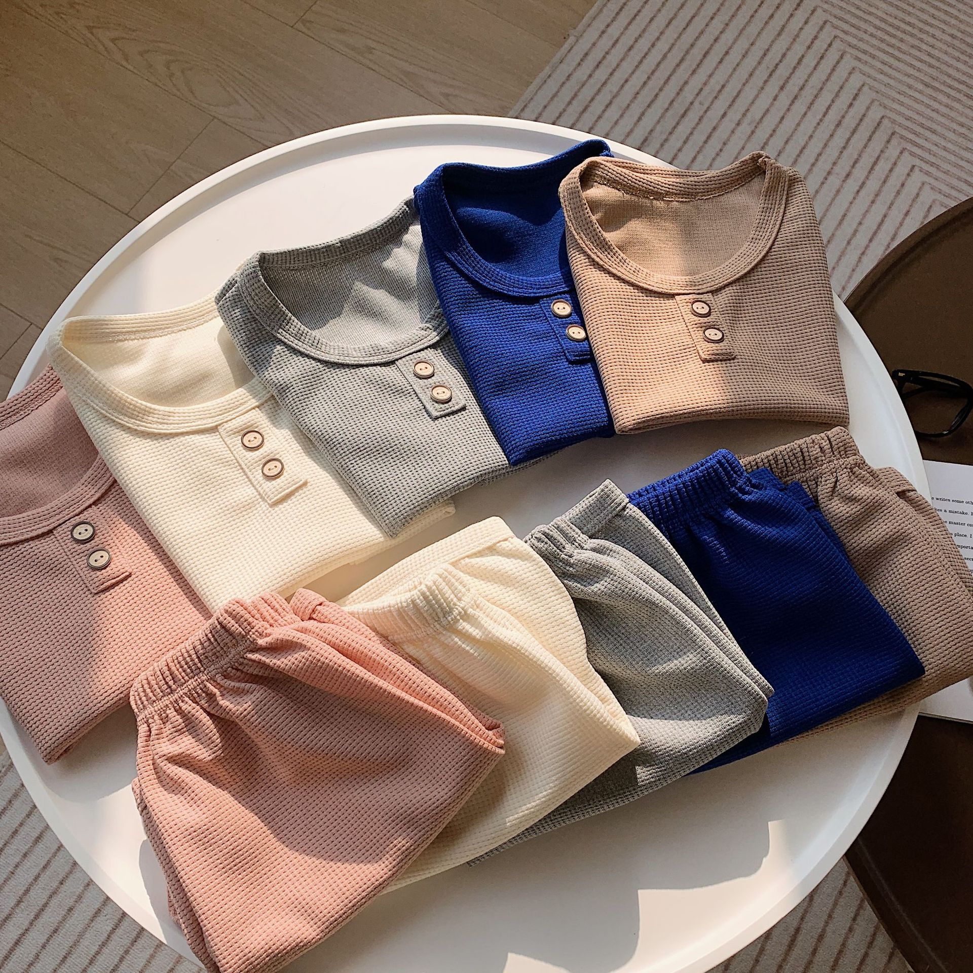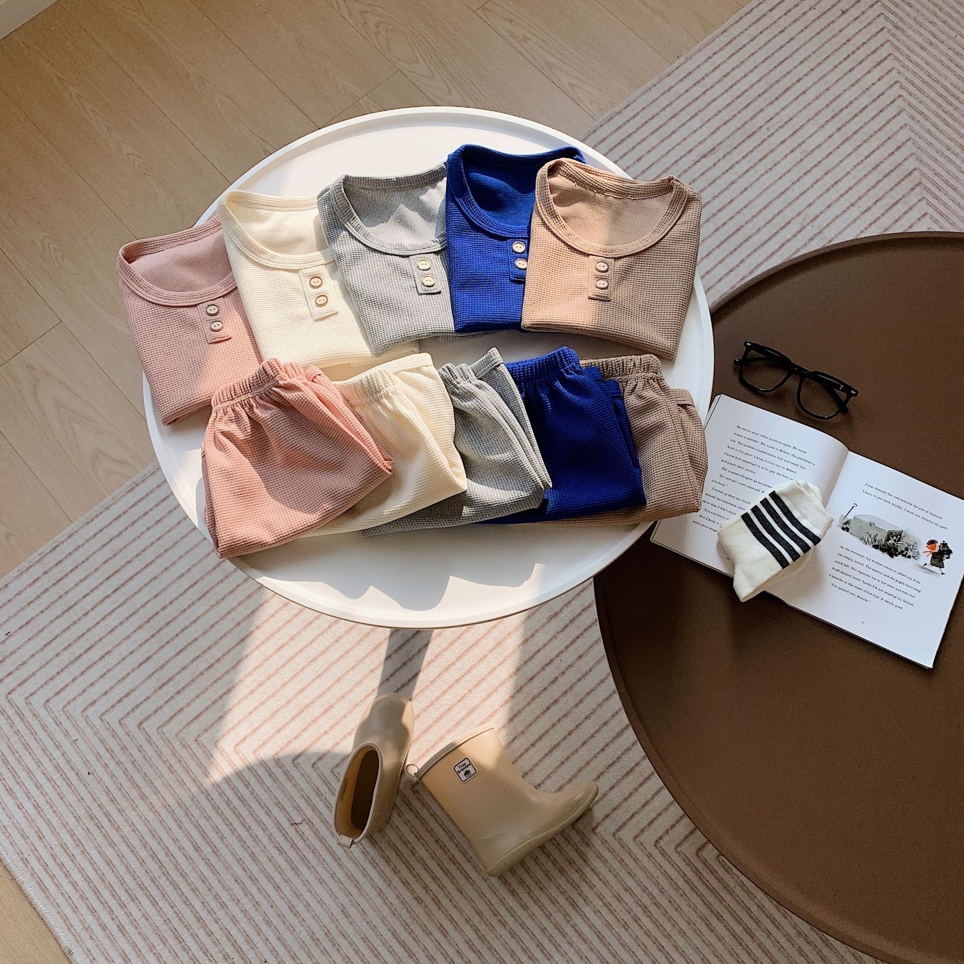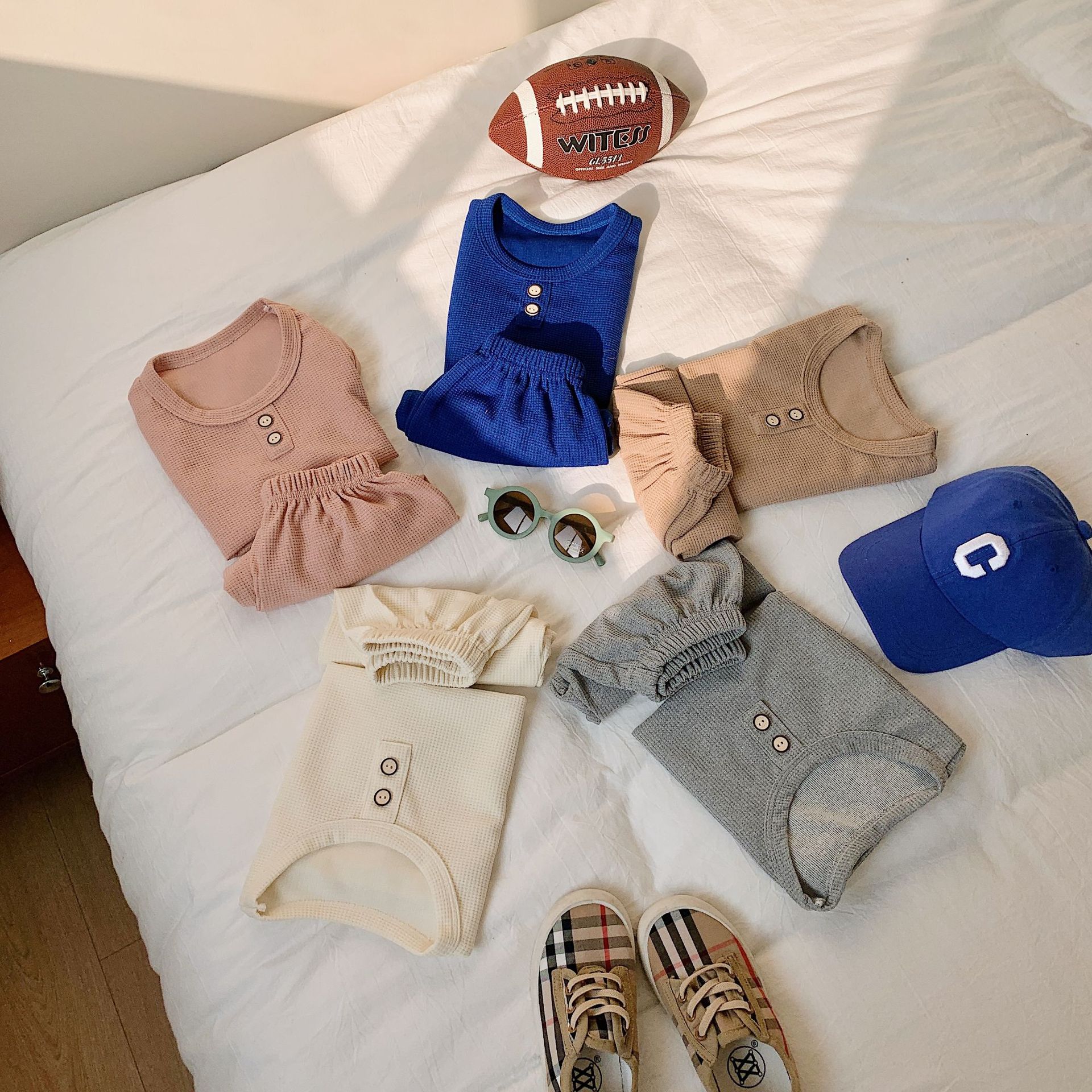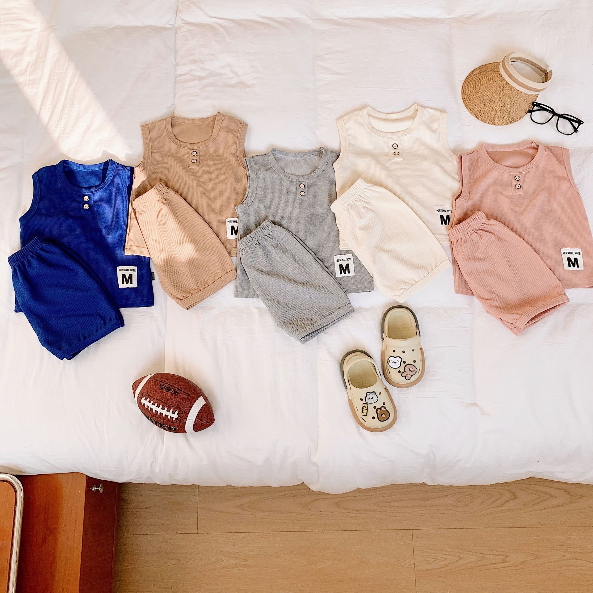 【儿童背心套装,夏日必备!】新款儿童背心套装宝宝短袖两件套,夏季童装华夫格潮童套装潮,带来清爽舒适的穿着体验!-lm
