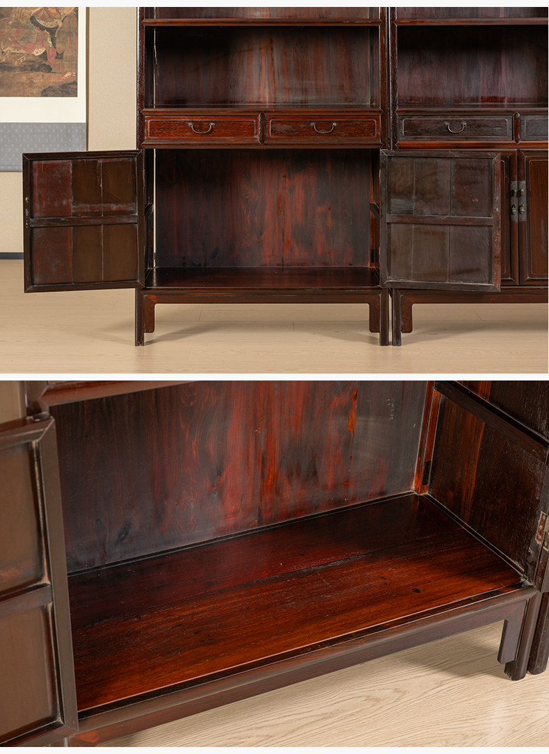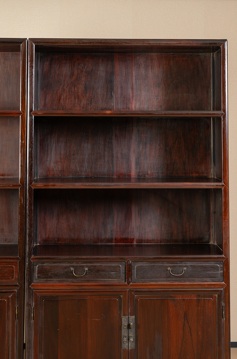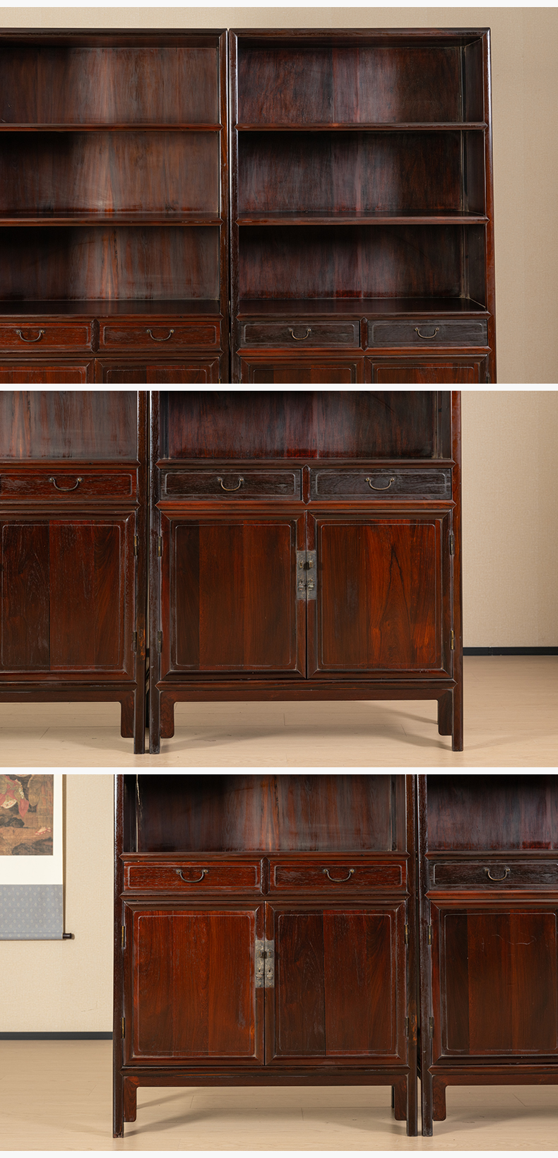 二十世纪 红木嵌云石透雕拐子纹百灵台