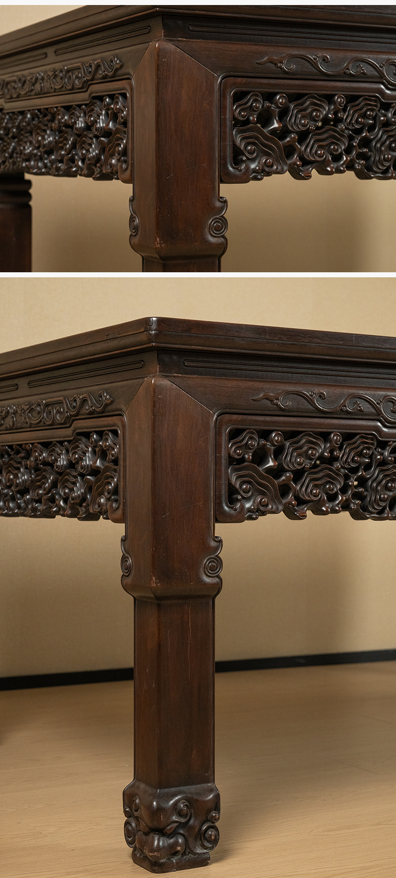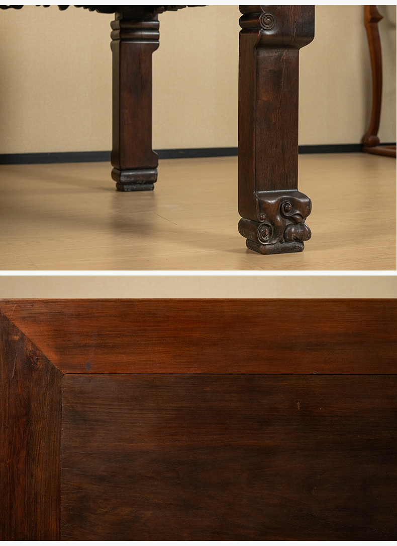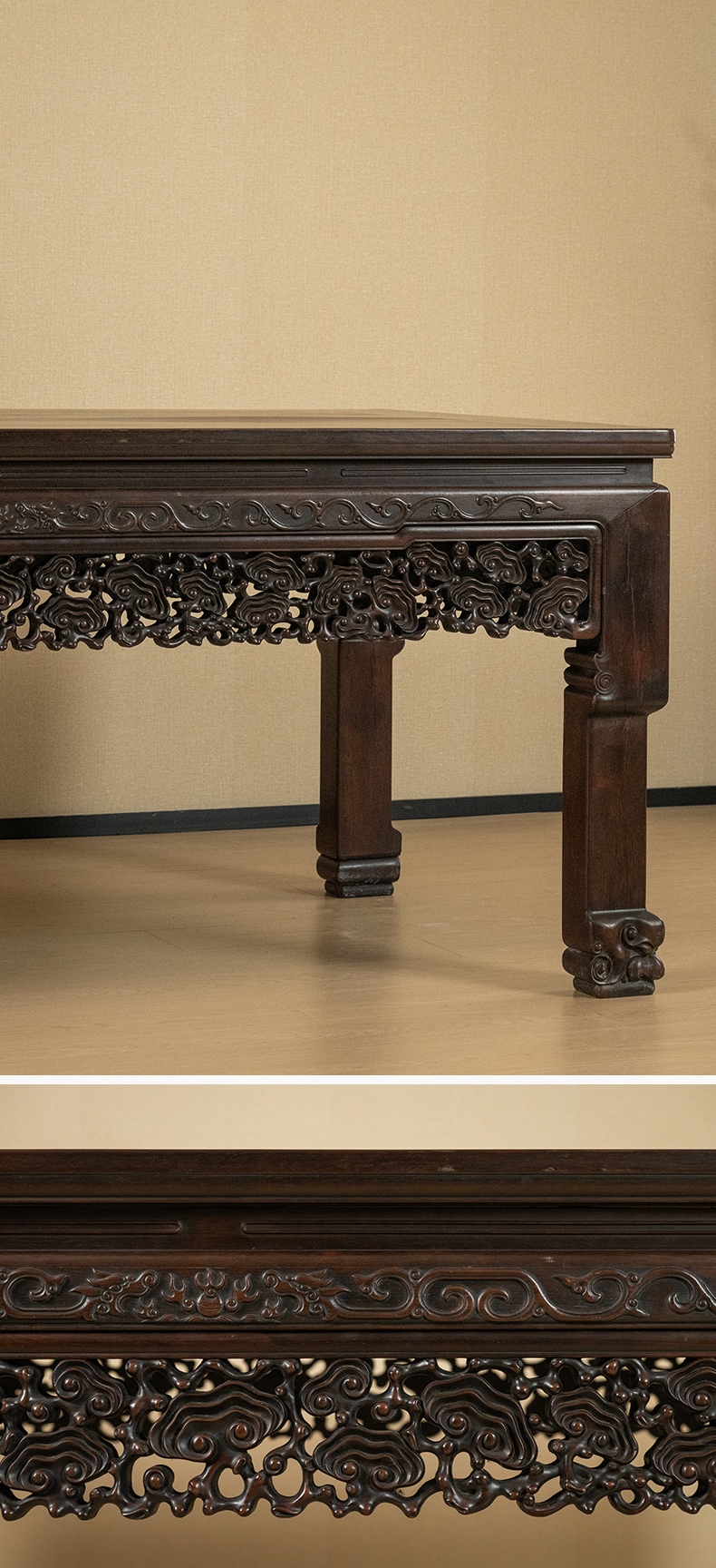 二十世纪 红木嵌云石透雕拐子纹百灵台