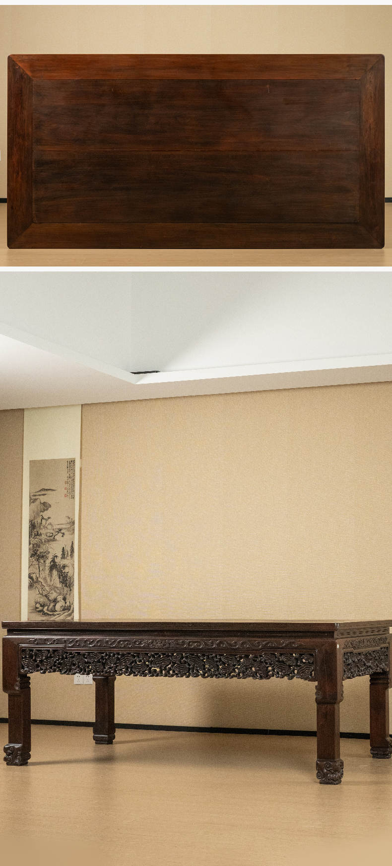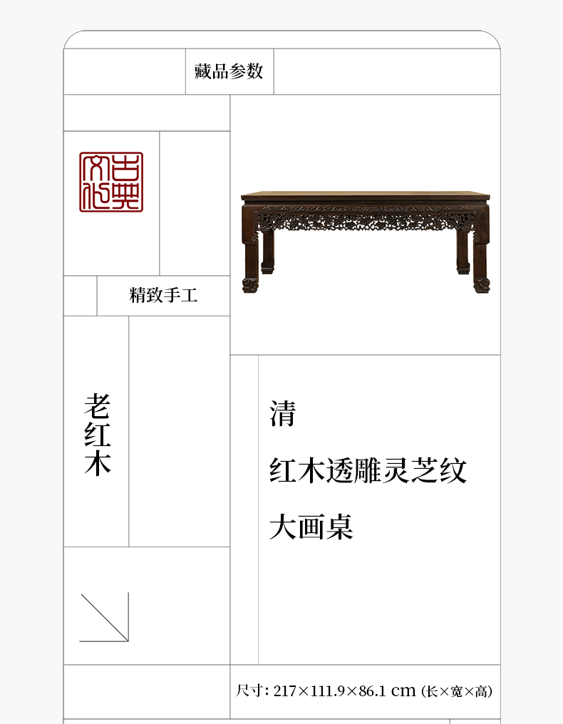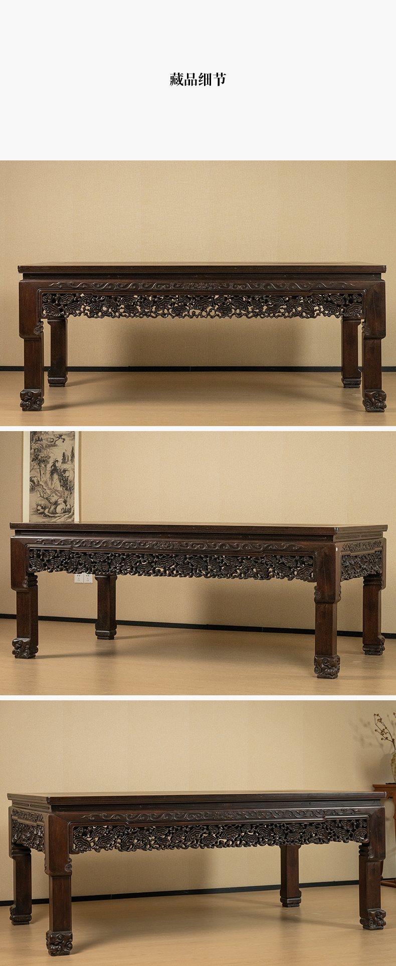 二十世纪 红木嵌云石透雕拐子纹百灵台