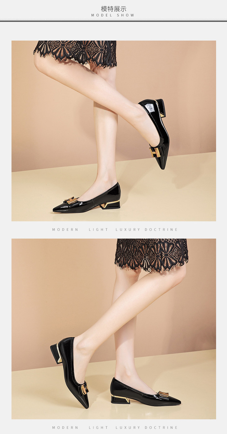 OLD8563aa新款时尚气质漆皮尖头中跟浅口小皮鞋