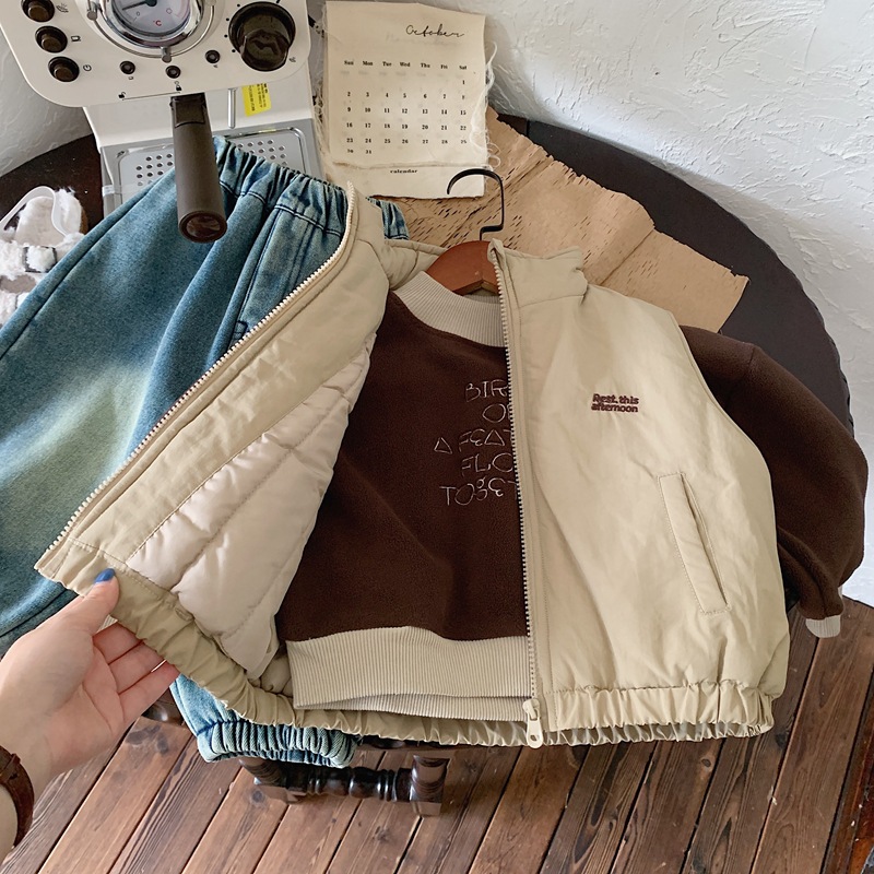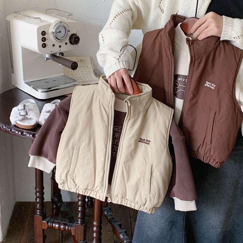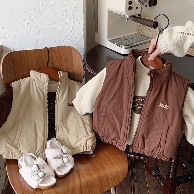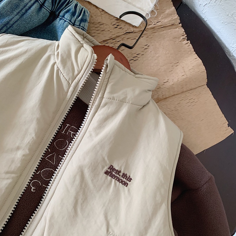 双12抢先购!【酷感十足!抗寒无忧】冬季儿童加棉马甲拉链衫,小男童个性百搭棉服 加厚外套刺绣背心 多功能搭配,轻便舒适穿着