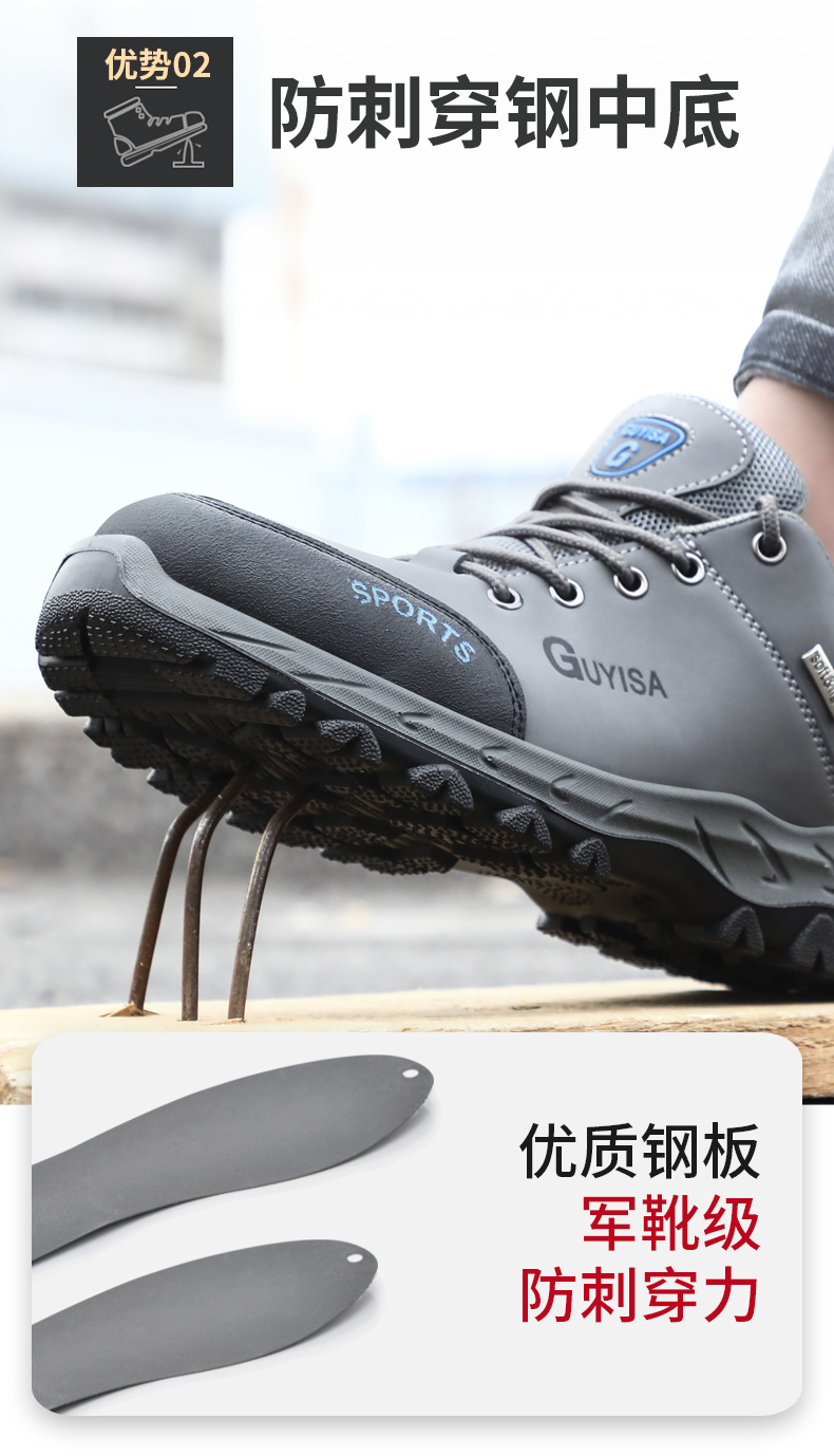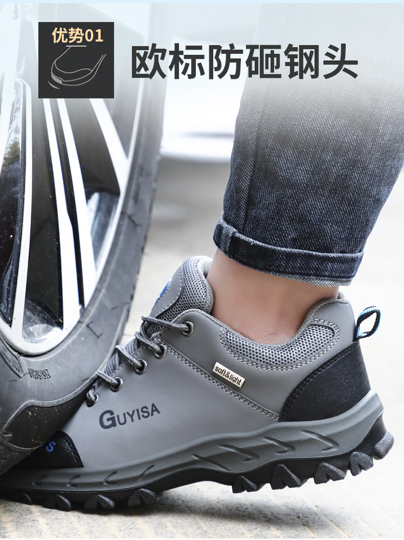劳保鞋男安全工作鞋钢包头钢底板防砸防刺穿实心底耐磨舒适四季款