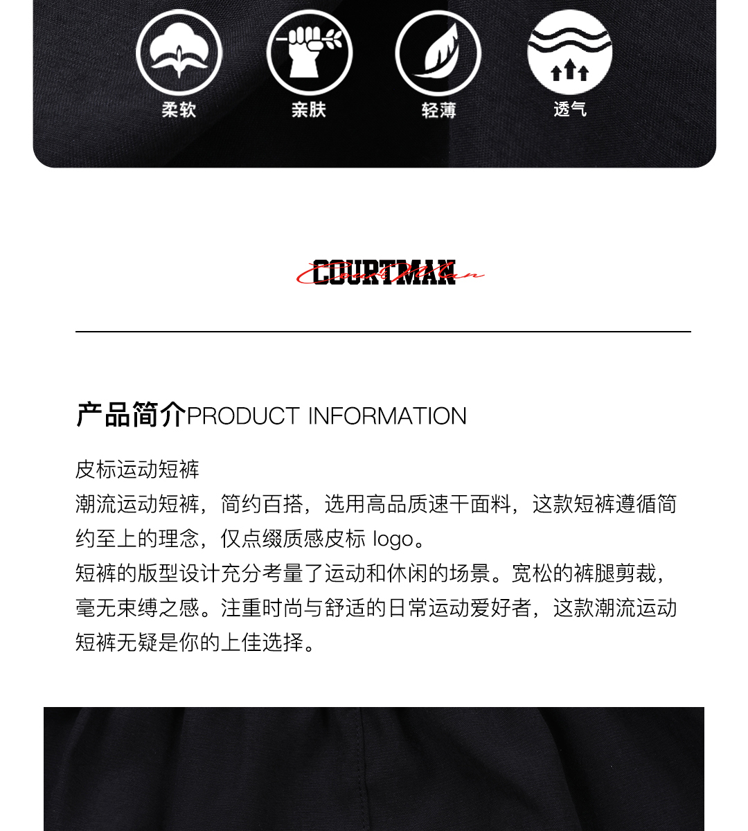 COURTMAN野球帝美式休闲运动短裤男夏新款篮球跑步训练四分裤