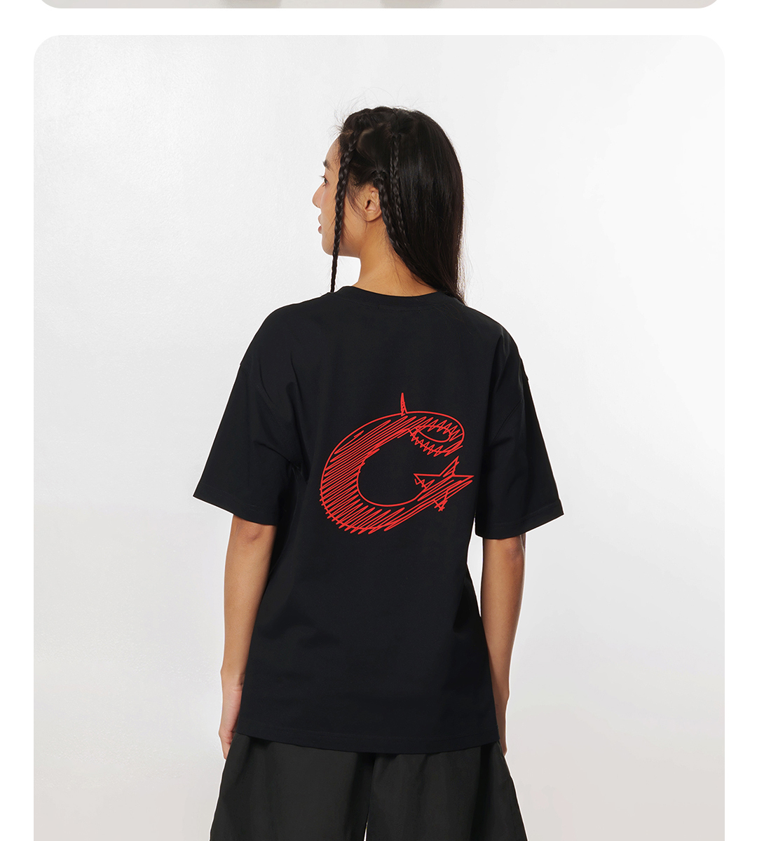 COURTMAN长袖T恤C星印花2023秋季新品运动休闲美式百搭宽松上衣潮
